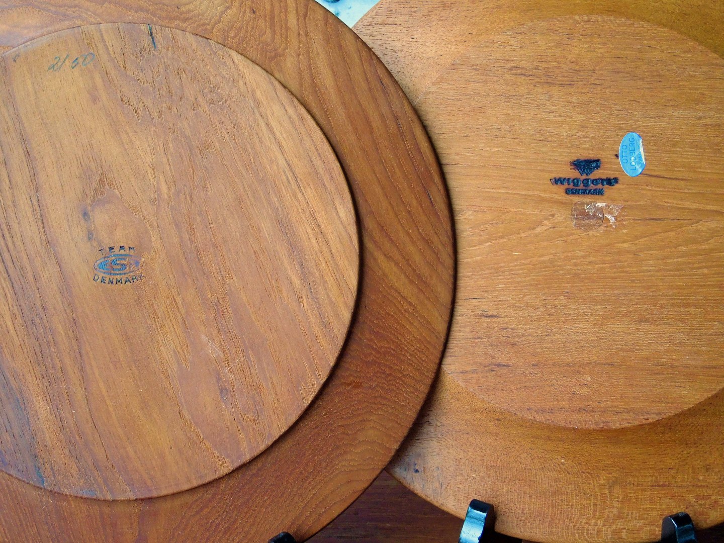 Dæktallerkener i teaktræ designet af ESA, Danmark og Wiggers, Denmark. Fremstår med overfladiske brugsspor - mindre ridser efter brug.