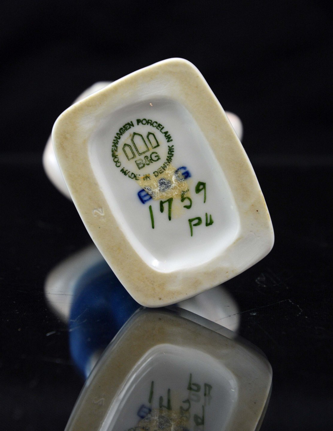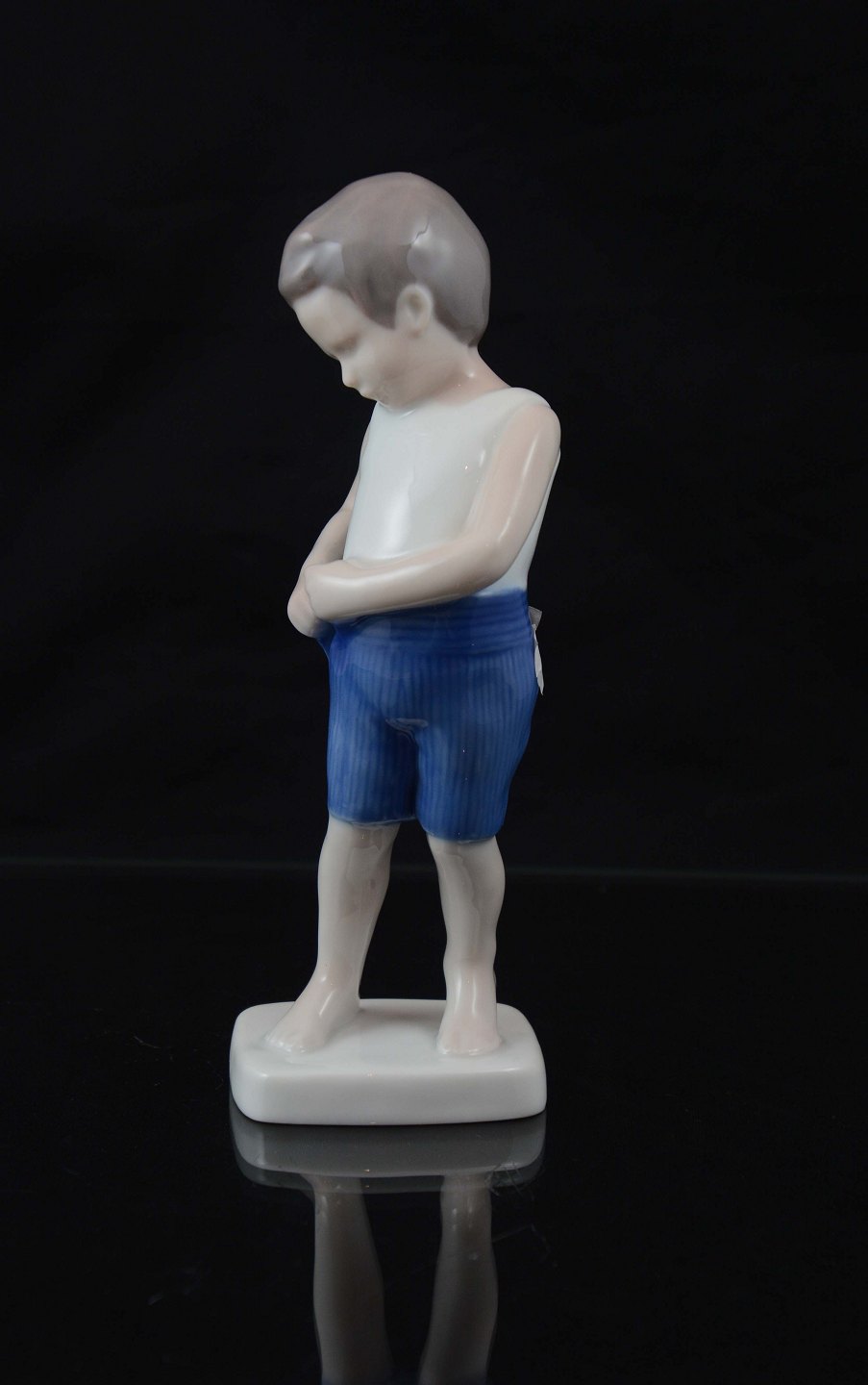 B&G figur Tiny Tot (nr. 1759) dreng med blå bukser. Designet af Michaela Ahlmann for Bing og Grøndahl.