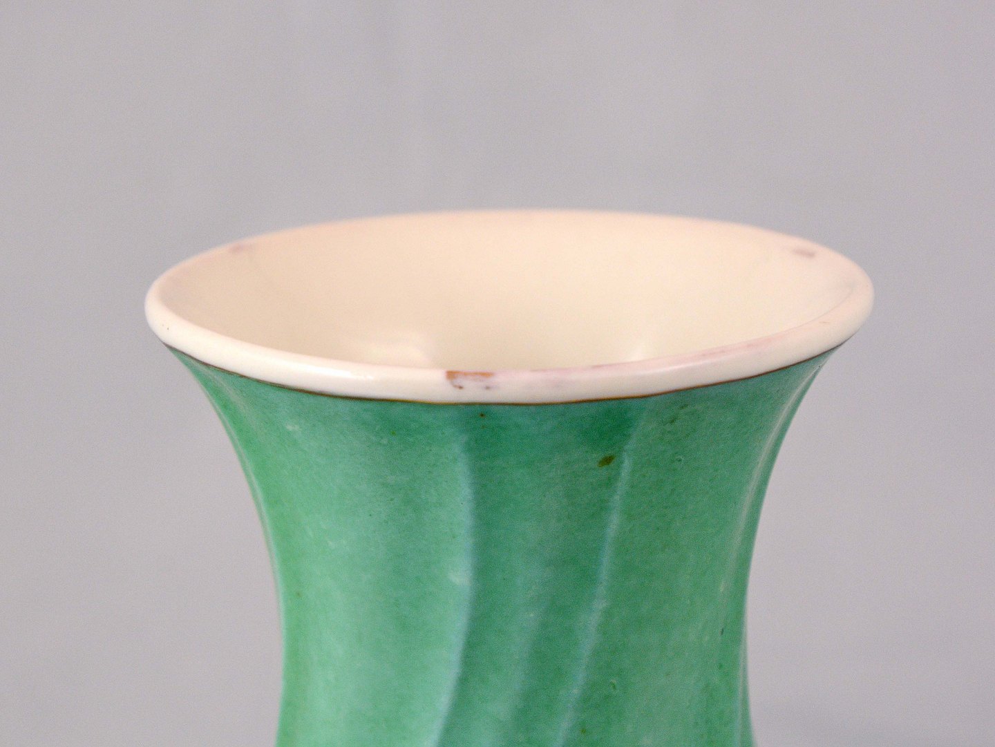 Grøn Lyngby porcelæns vase, Svejfet med guldkant