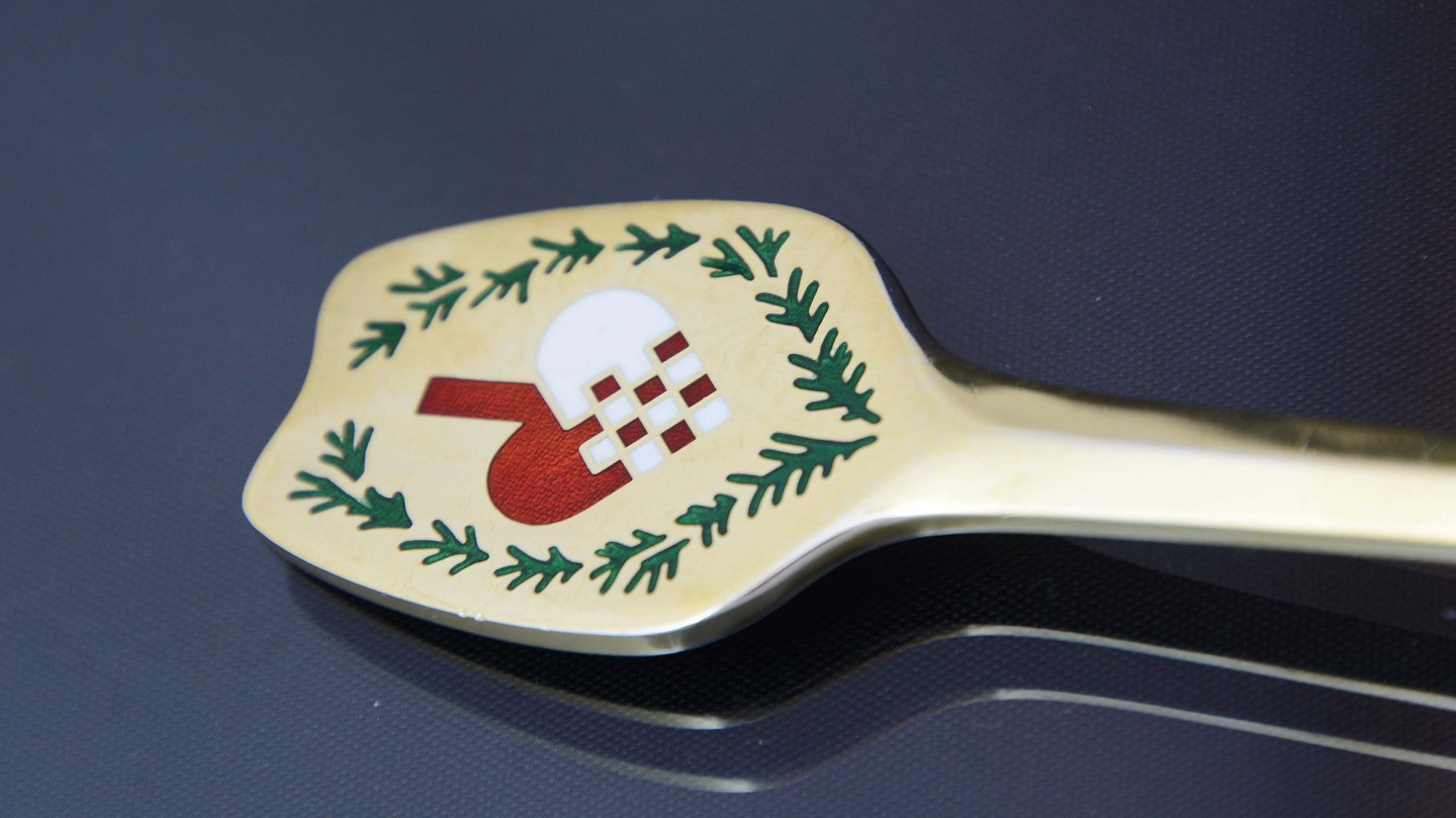 Juleske med julehjerte motiv fra julen 1951, designet af Anton Michelsen.