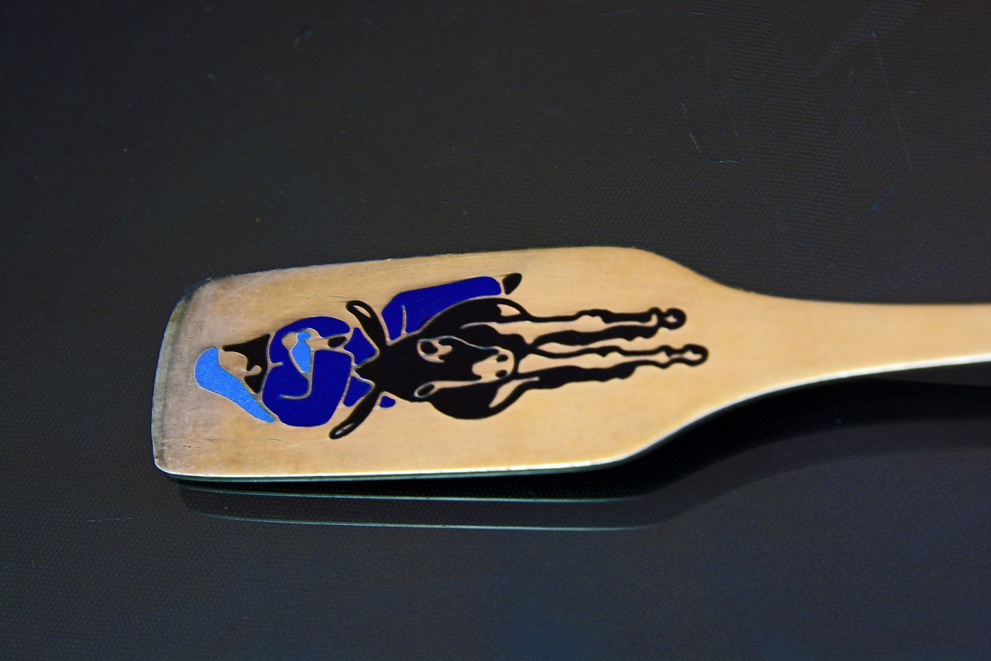 Længde 16 cm. i forgyldt sterling sølv med brugsspor