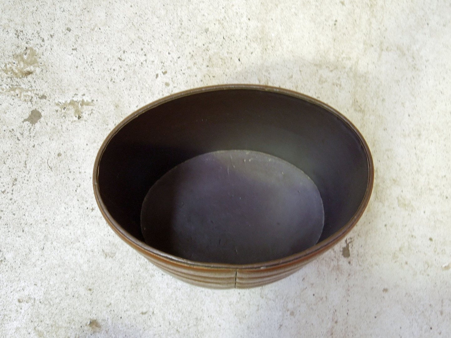 Oval papirkurv i træ.