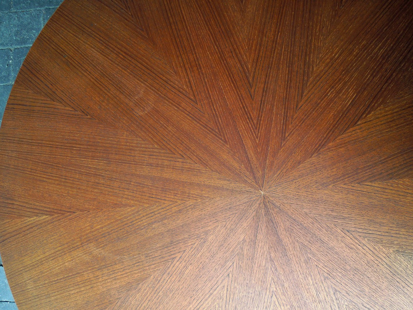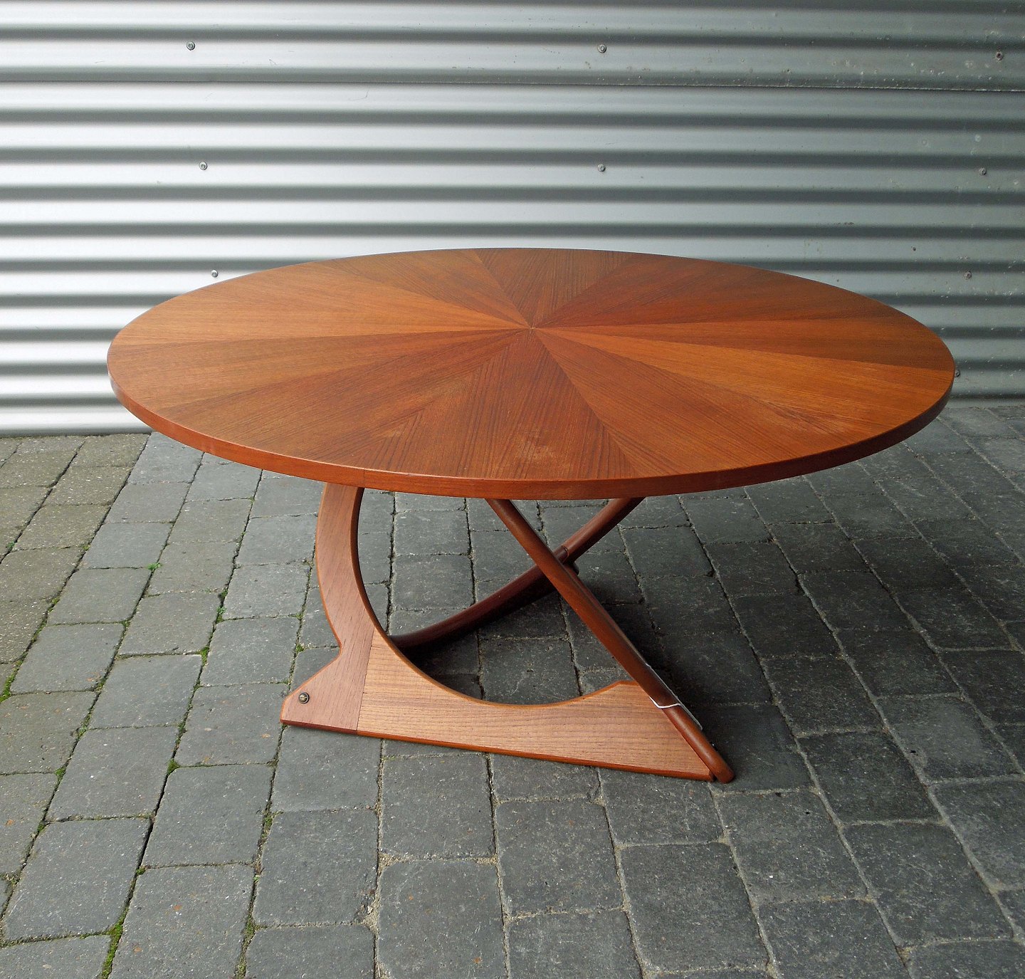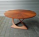 Rundt sofabord i spejlskåret teak. Designet af Søren Georg Jensen for Cubus. Prod. Tønder Møbelfabrik.