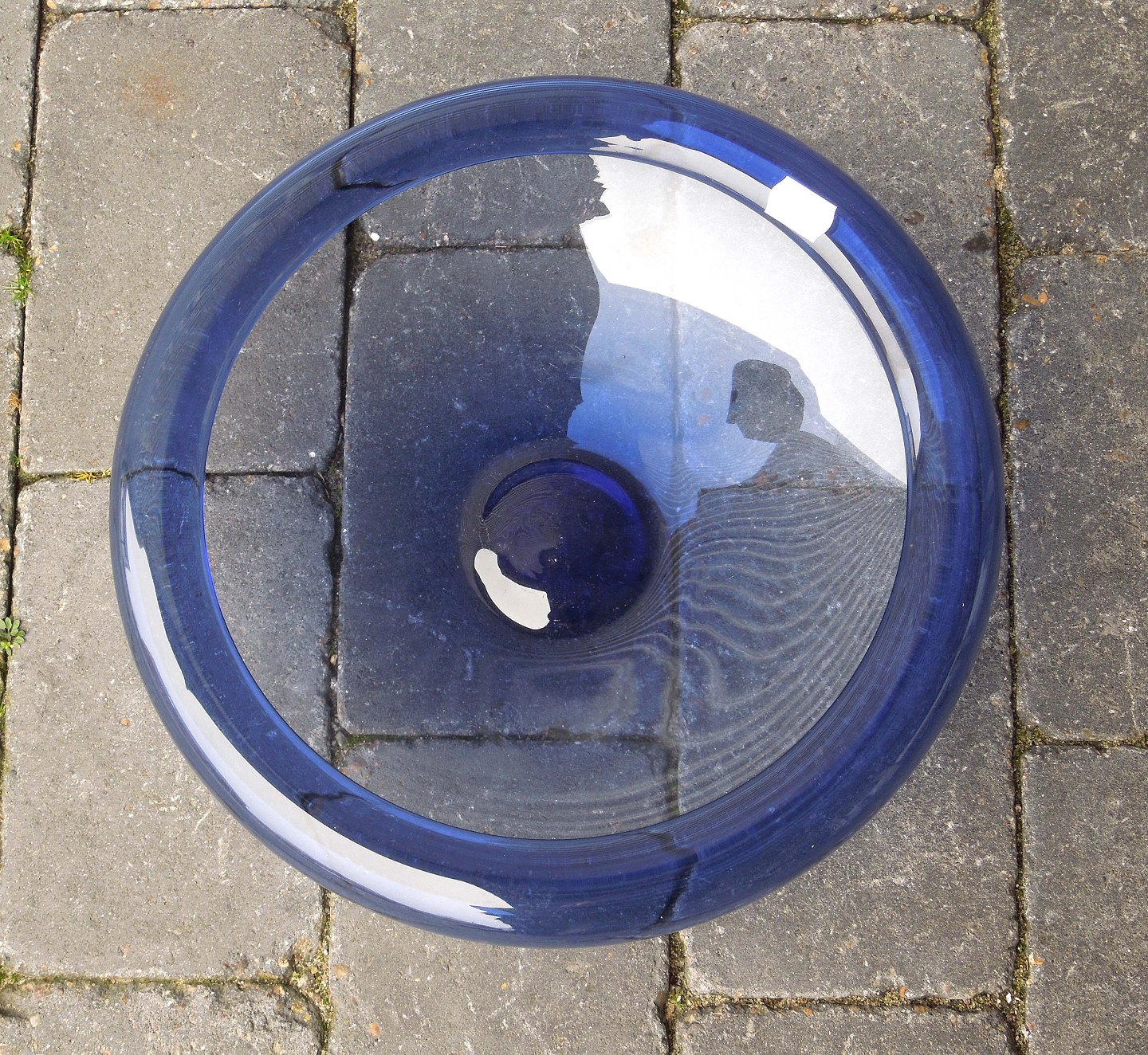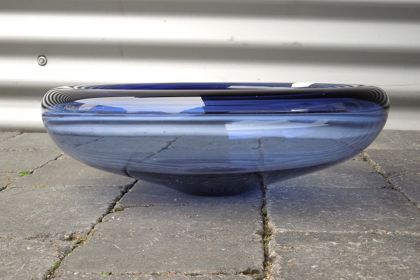 Mellem `Provence´ skål, nr. 17793 i klart blåt glas. Skålen er designet at Per Lütken for Holmegaard.