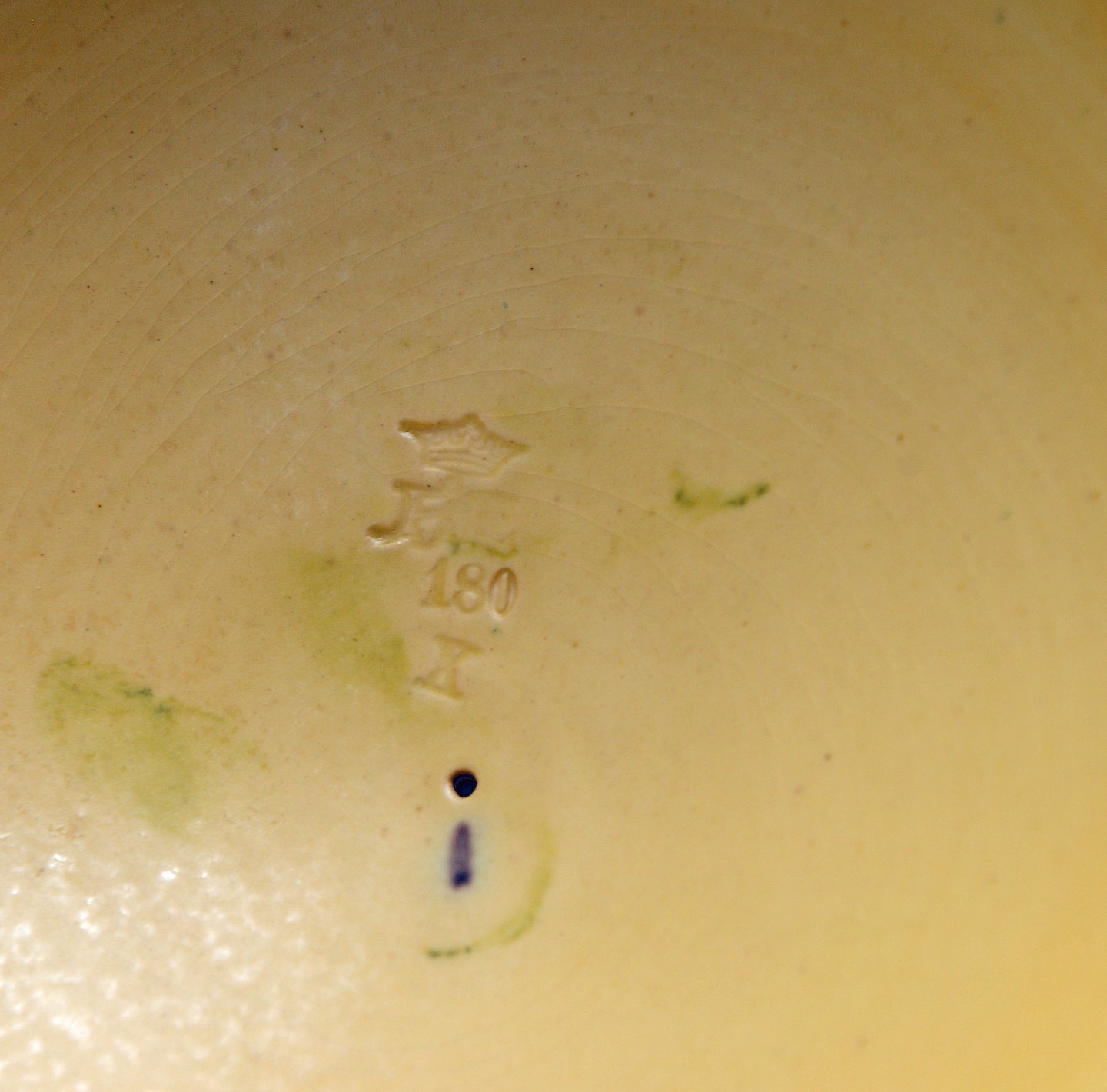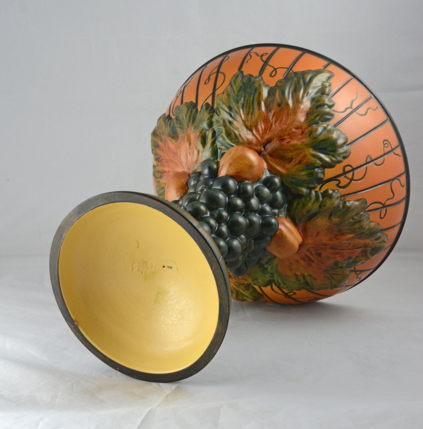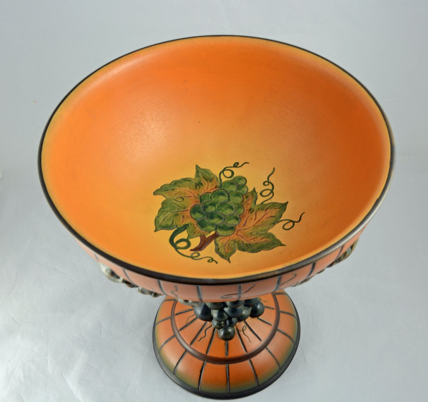 Stor opsats (nr. 180) fra Ipsens enke. Frugtopsats eller kageopsats er udformet i keramik med motiv af drueranker og blommer.