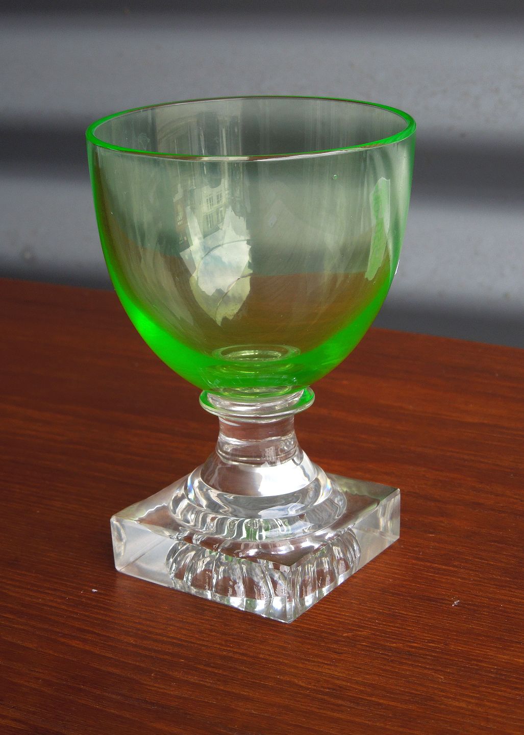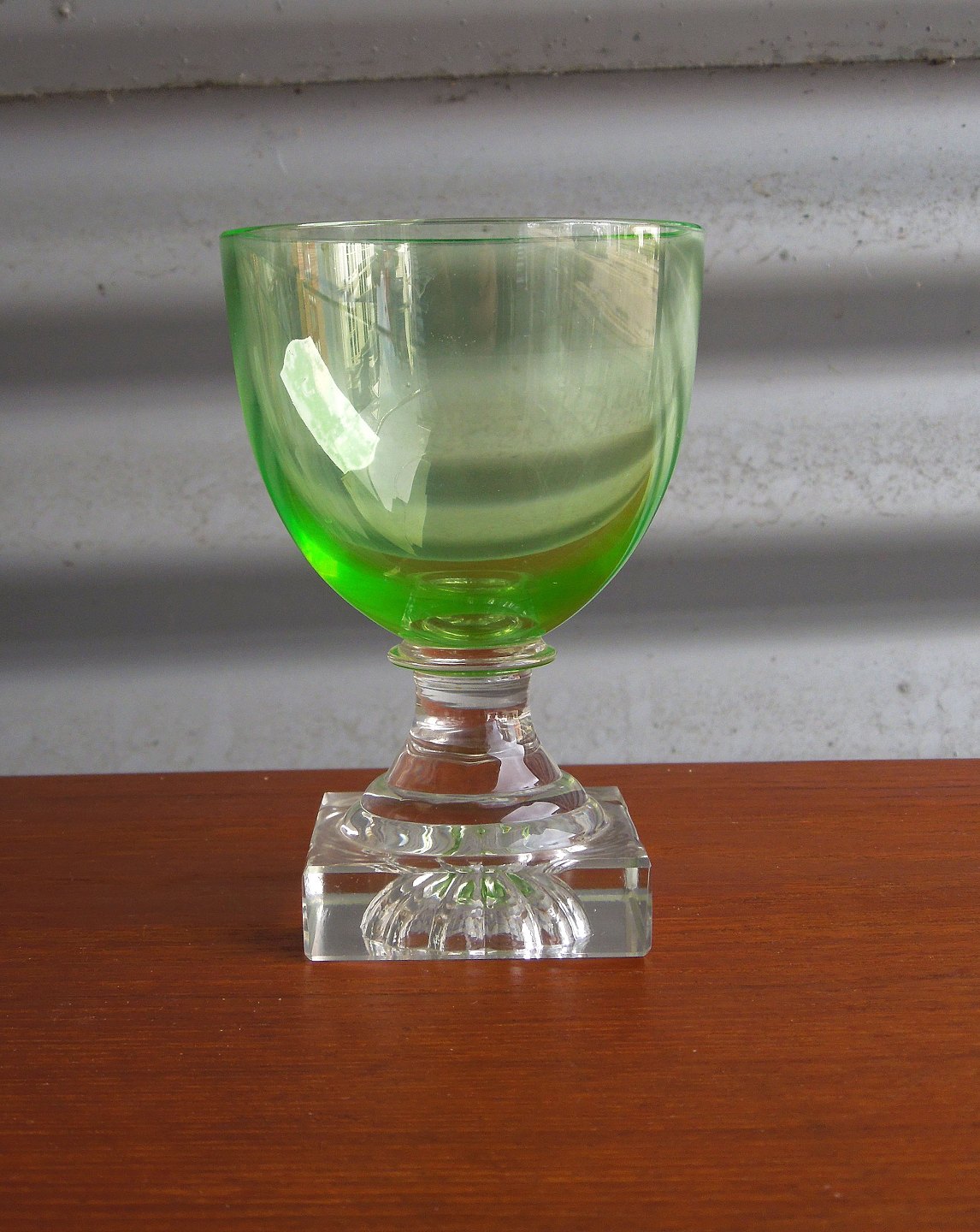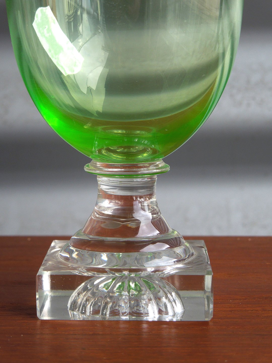 Hvidvin Gorm den Gamle hvidvinglas. Uranfarvet grønne glas.