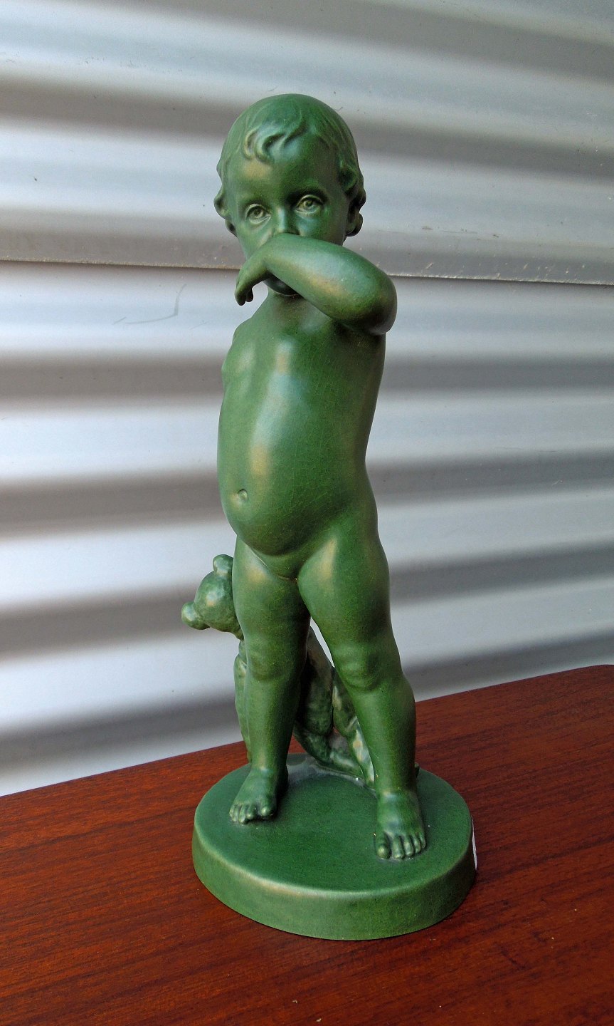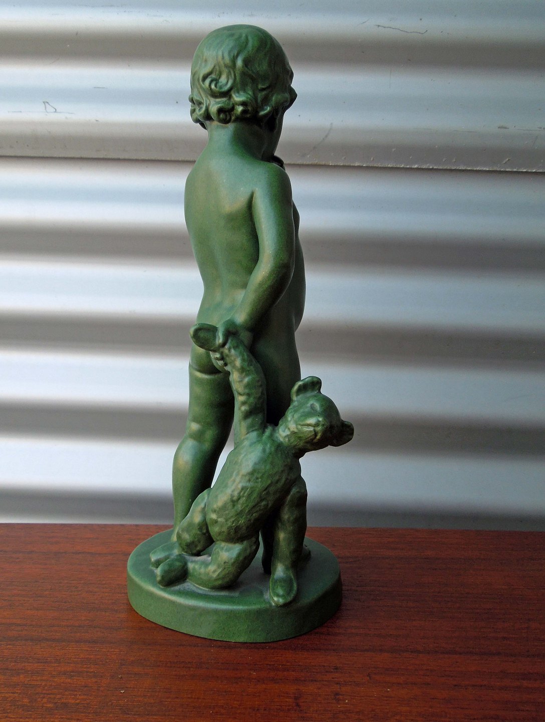 Figur af Dreng med bamse (nr. 68 XII) af Adda Bonfils for Ipsens Enke.