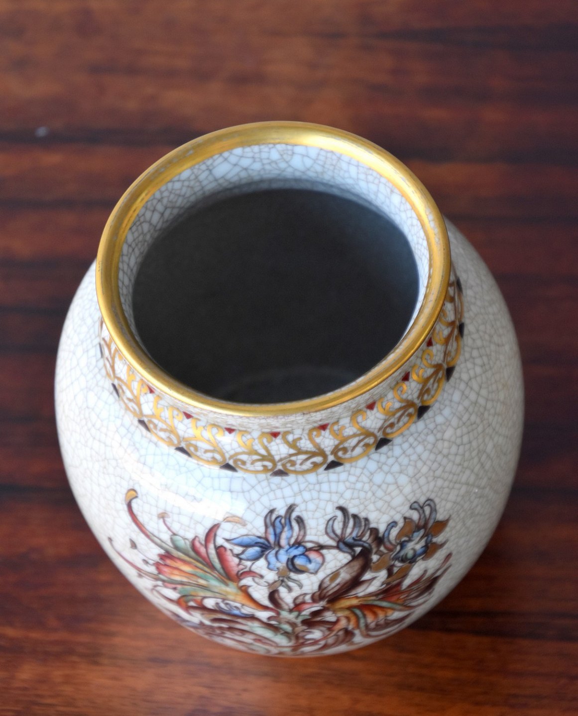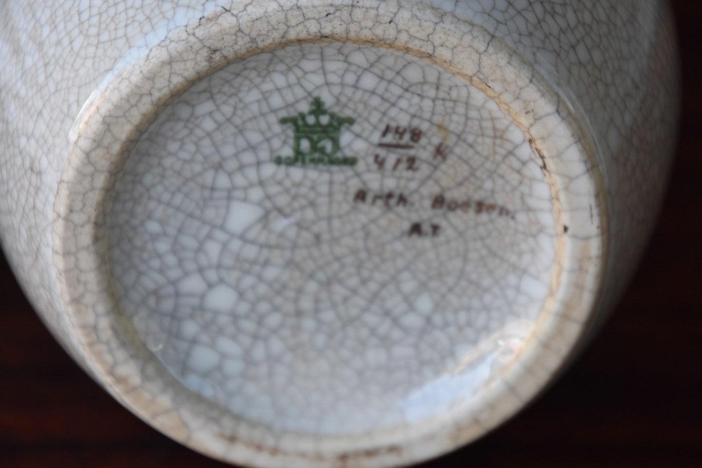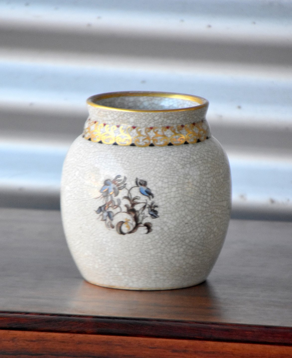 Dahl Jensen, Copenhagen vase med blomstermotiv og gylden kant. Signeret i bunden med "Arth Boesen A.T"