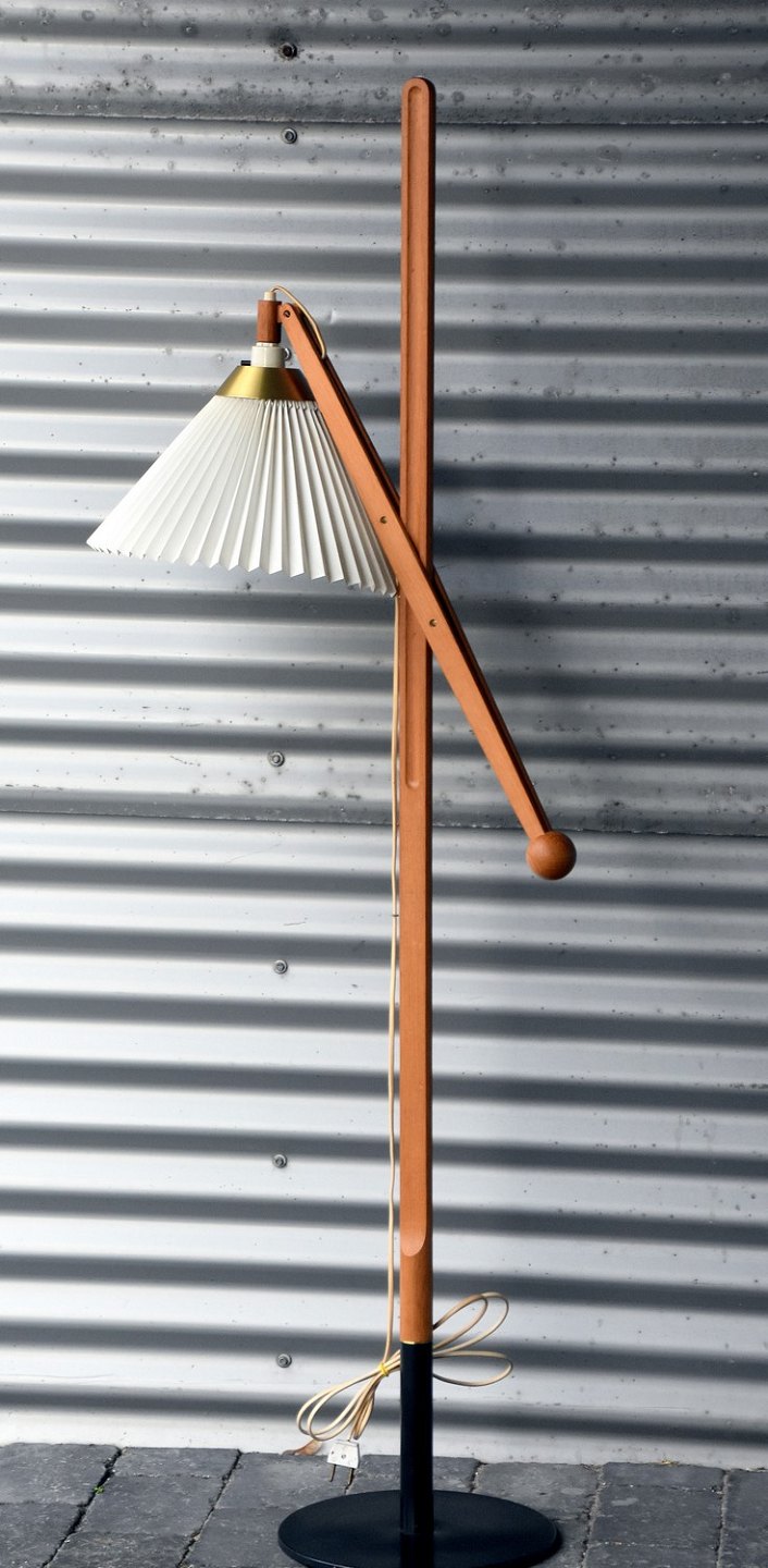 Gulvlampe nr.: 325 af Wilhelm Wohlert. Lyst eg. Justerbar højde og vinkel H.. 152 cm B.: 75 cm