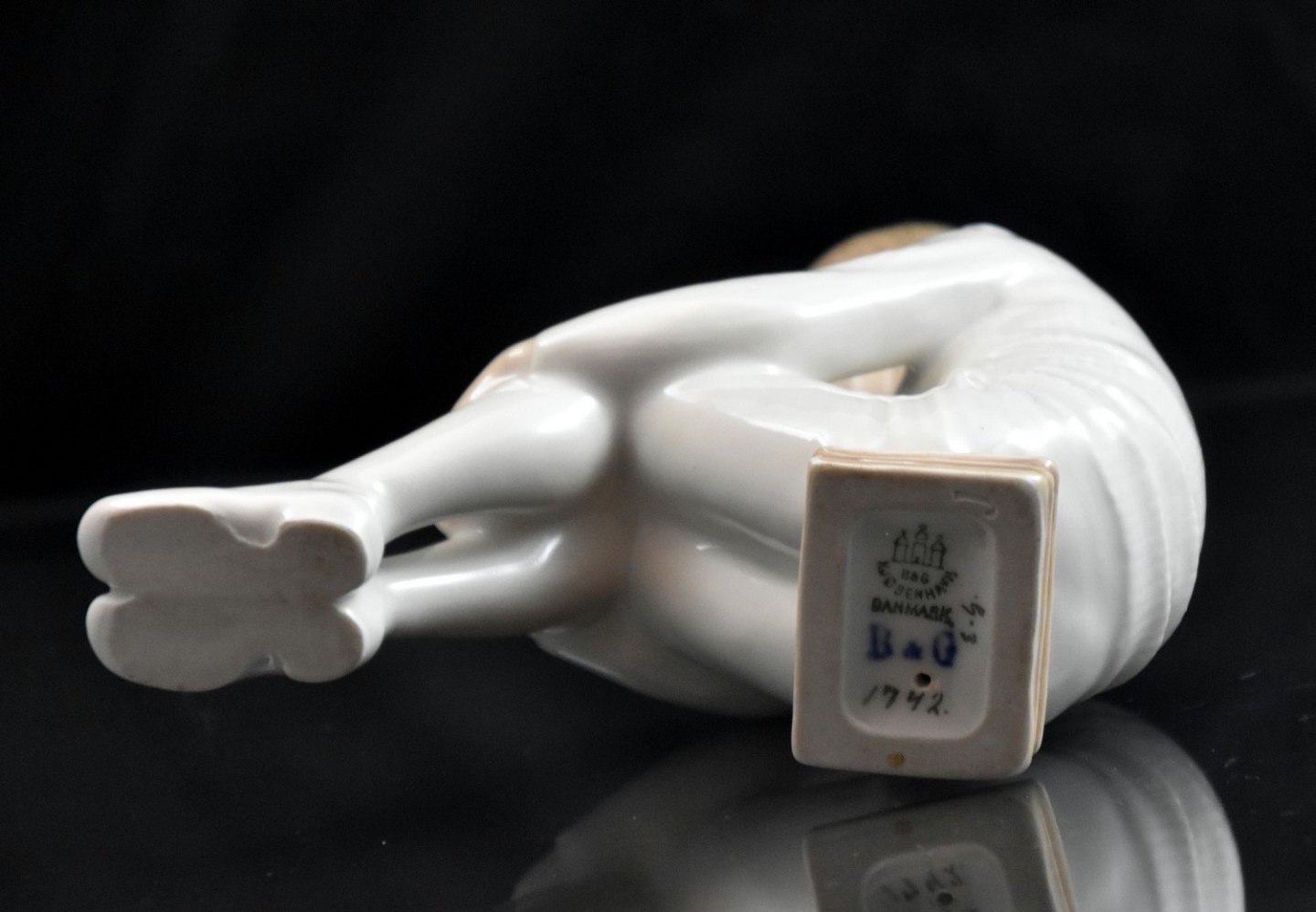Bing og Grøndahl figur Skolen er slut (1742). Designer Ingeborg Plockross Irminger, dreng i hvidt tøj med blå krave