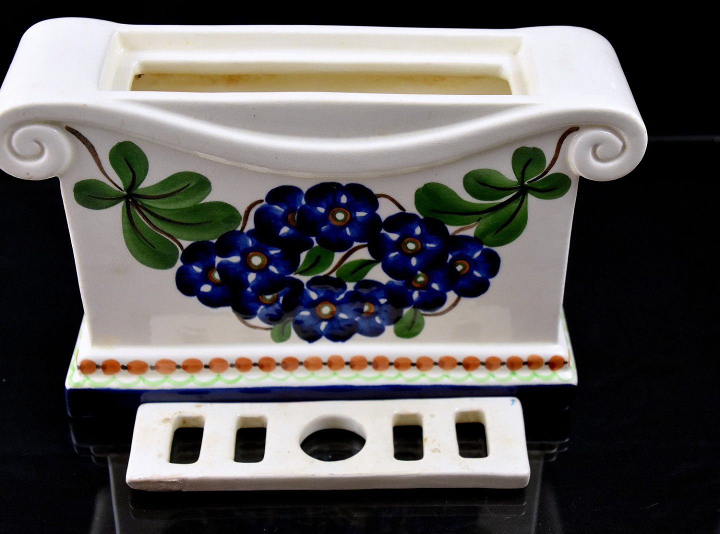 Blomsterkumme blåt blomster-motiv med indvendig rist med reparation.