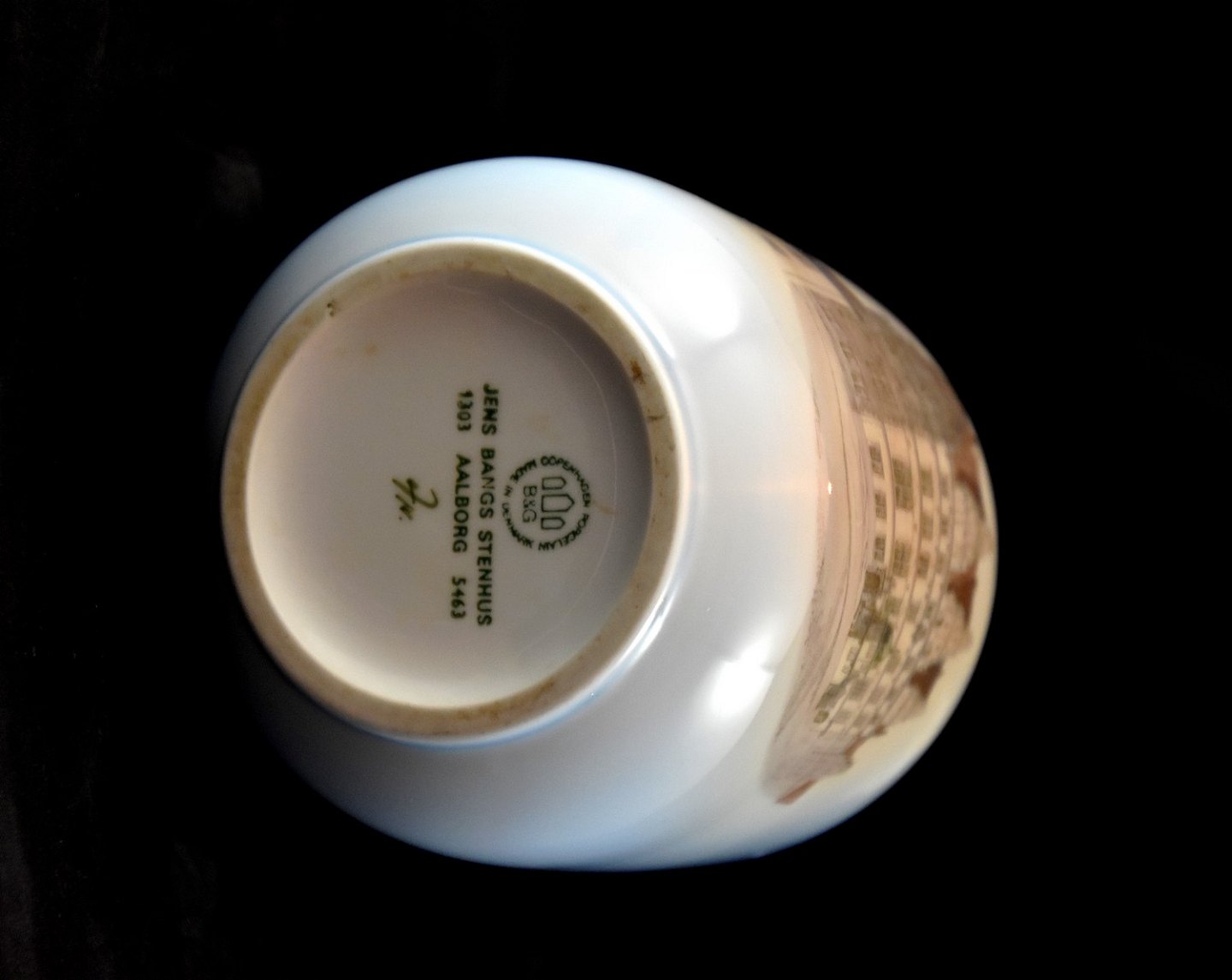 Bing & Grøndahl, vase (1303/5463) med motiv af Jens Bangs Stenhus i Aalborg.
