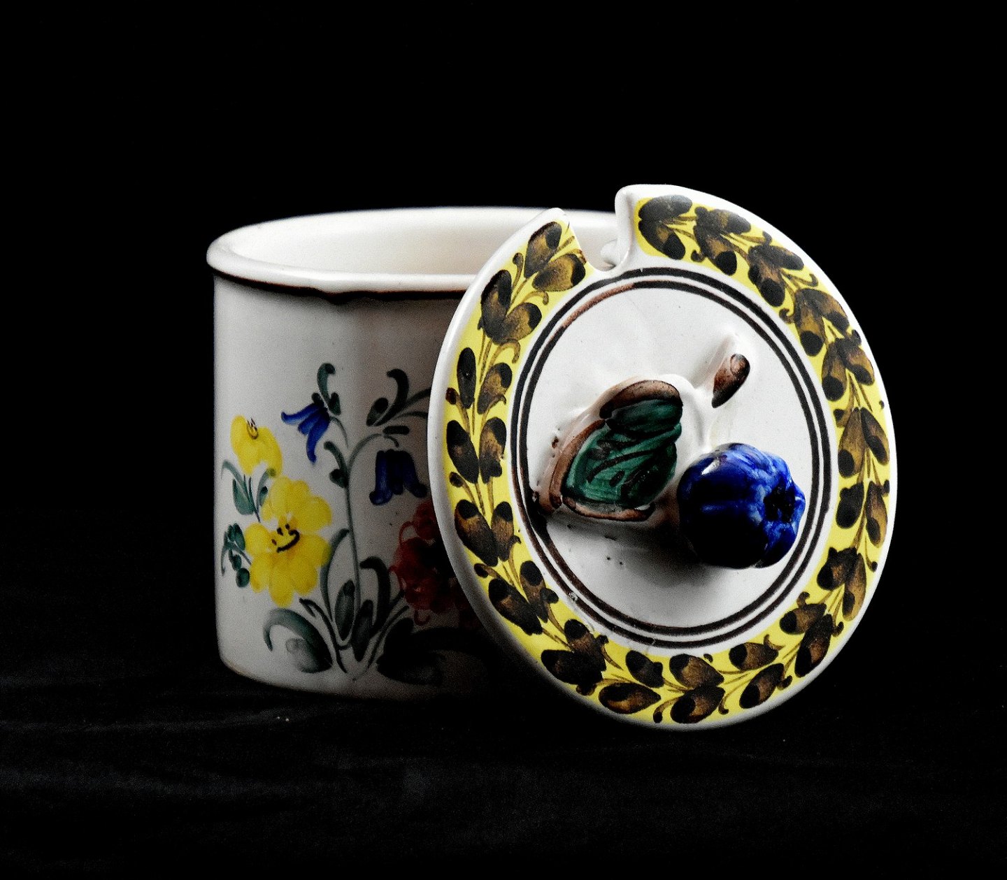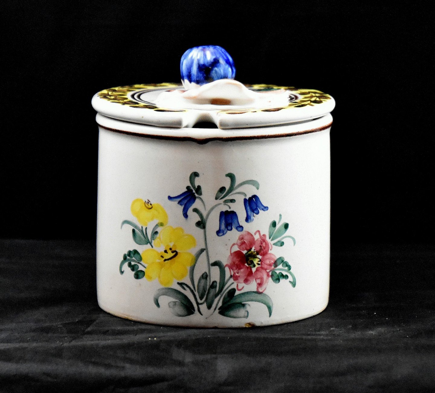 Lars Syberg, marmelade-/honningkrukke med låg og dekoreret med blomster.
