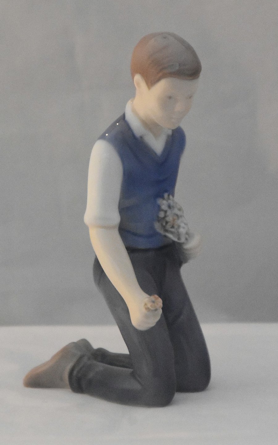 Bing & Grøndahl figur Dreng på knæ, der plukker blomster