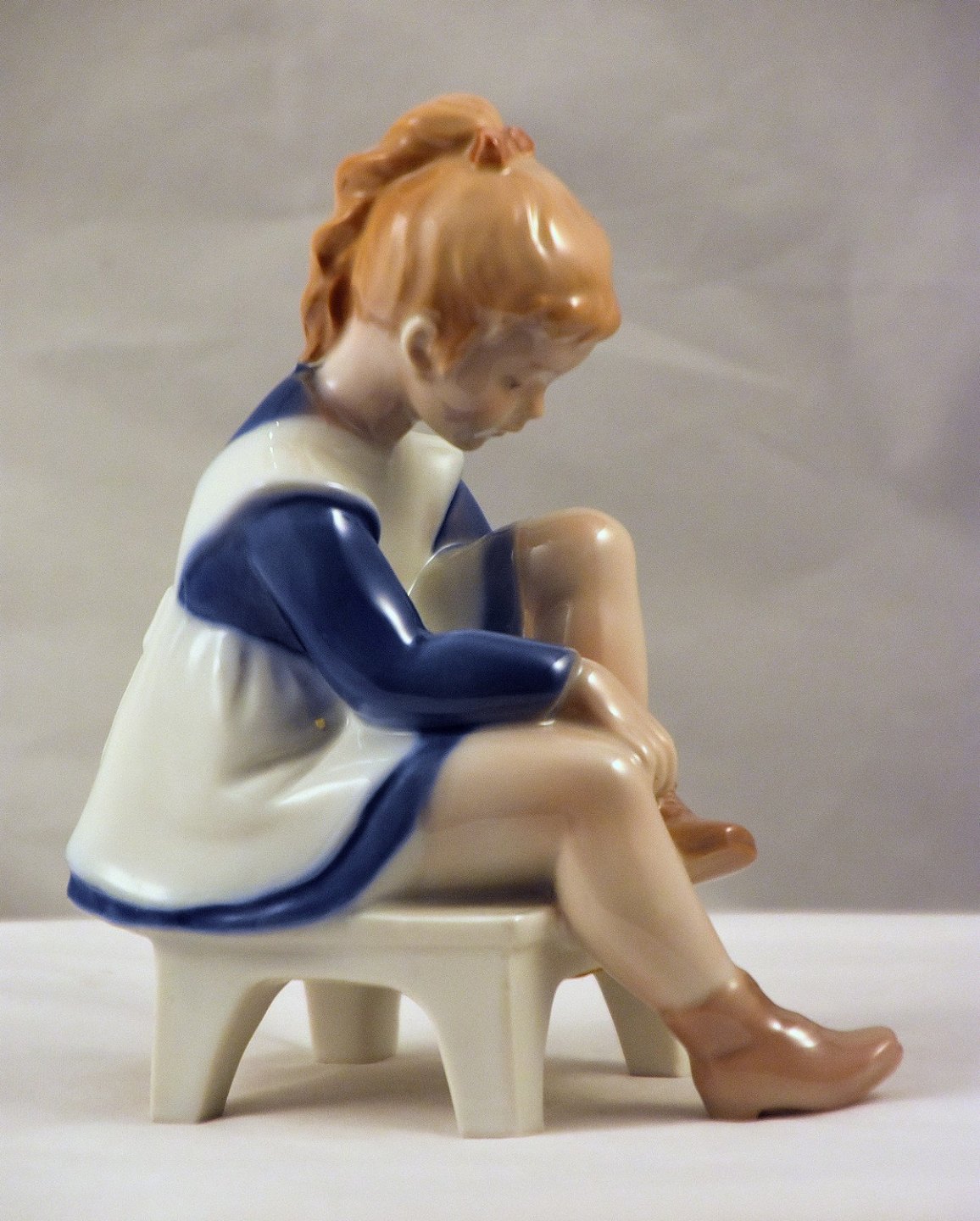 Bing & Grøndahl figur, Pige på skammel binder sko (2373). Tegnet af Clair Weiss