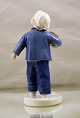 Bing & Grøndahl figur Dreng i nattøj med krukke "Hvem kalder?" (2251) blåt tøj, hvid fod