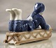 Royal Copenhagen figur Pige, i vintertøj, der ligger på en kælk ( Kgl. 5659) Designer Sterett Kelsey, Kgl