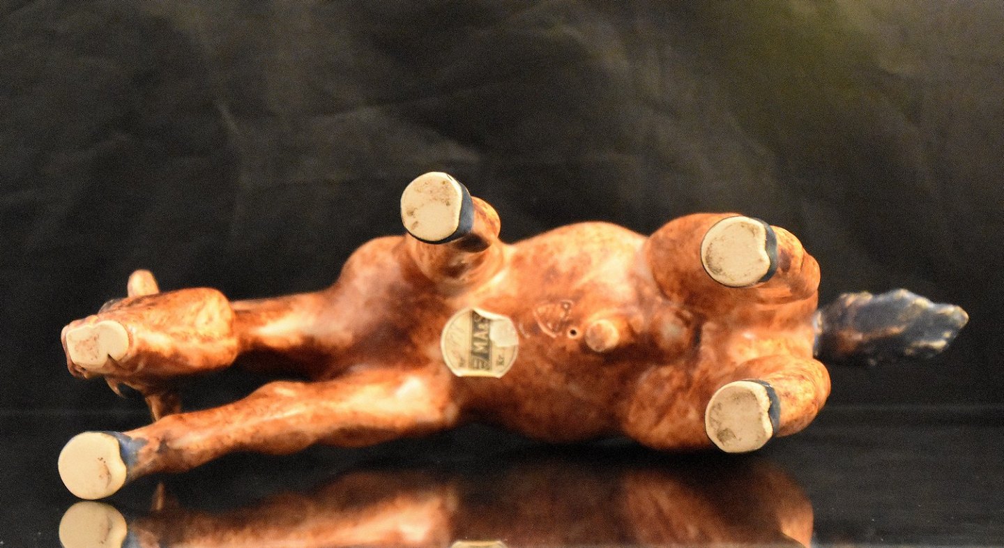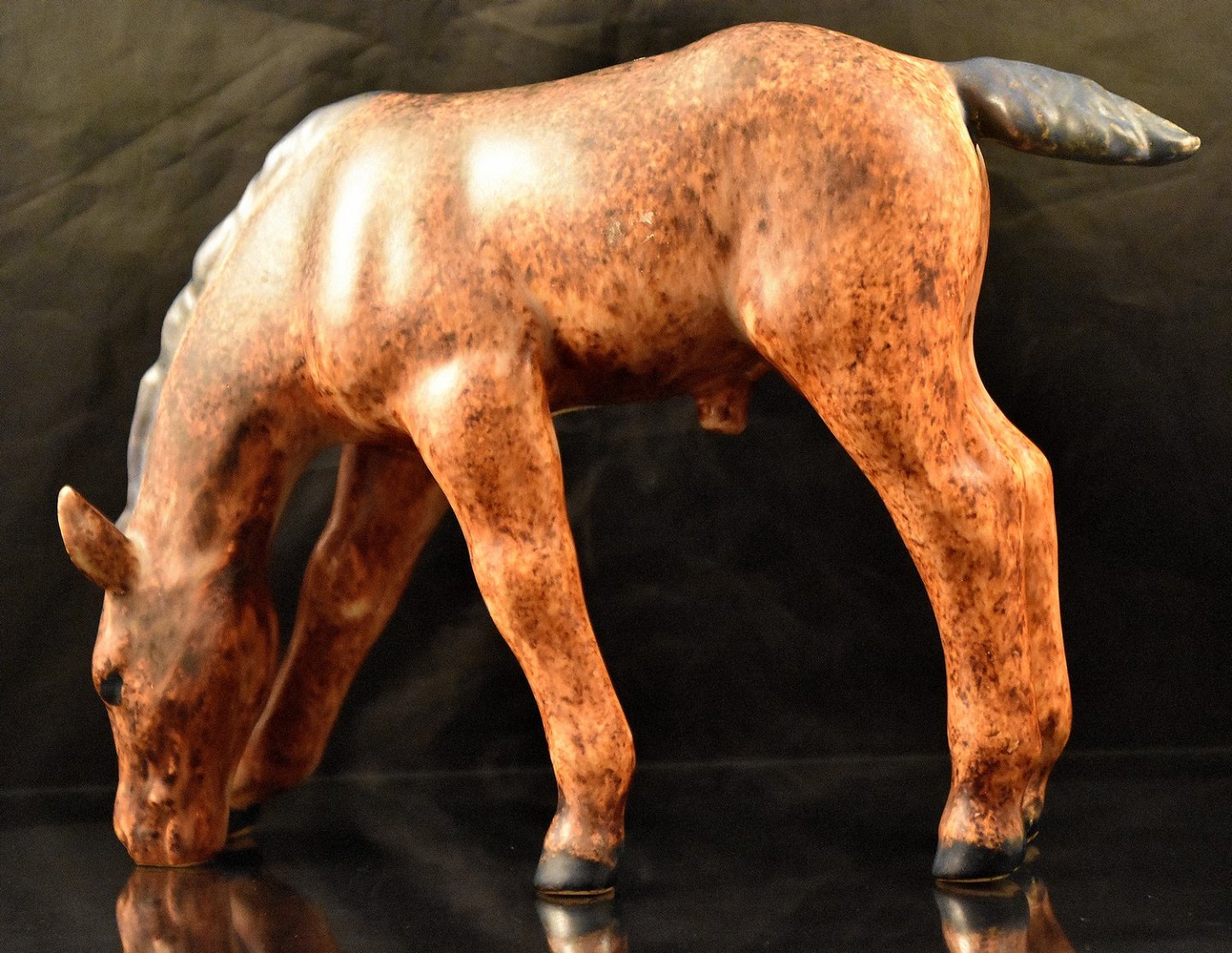 Figur i glaseret keramik med motiv af hest på græs nr. 5987