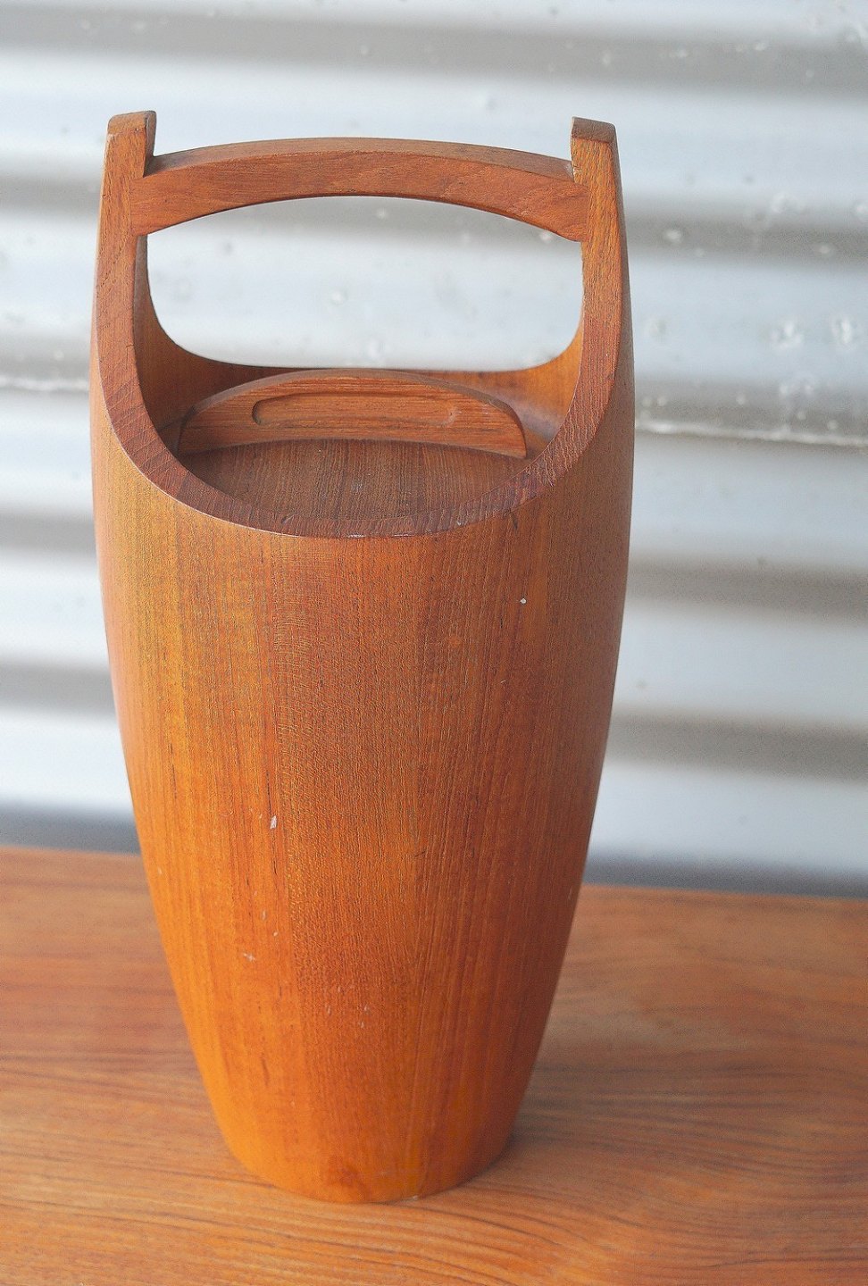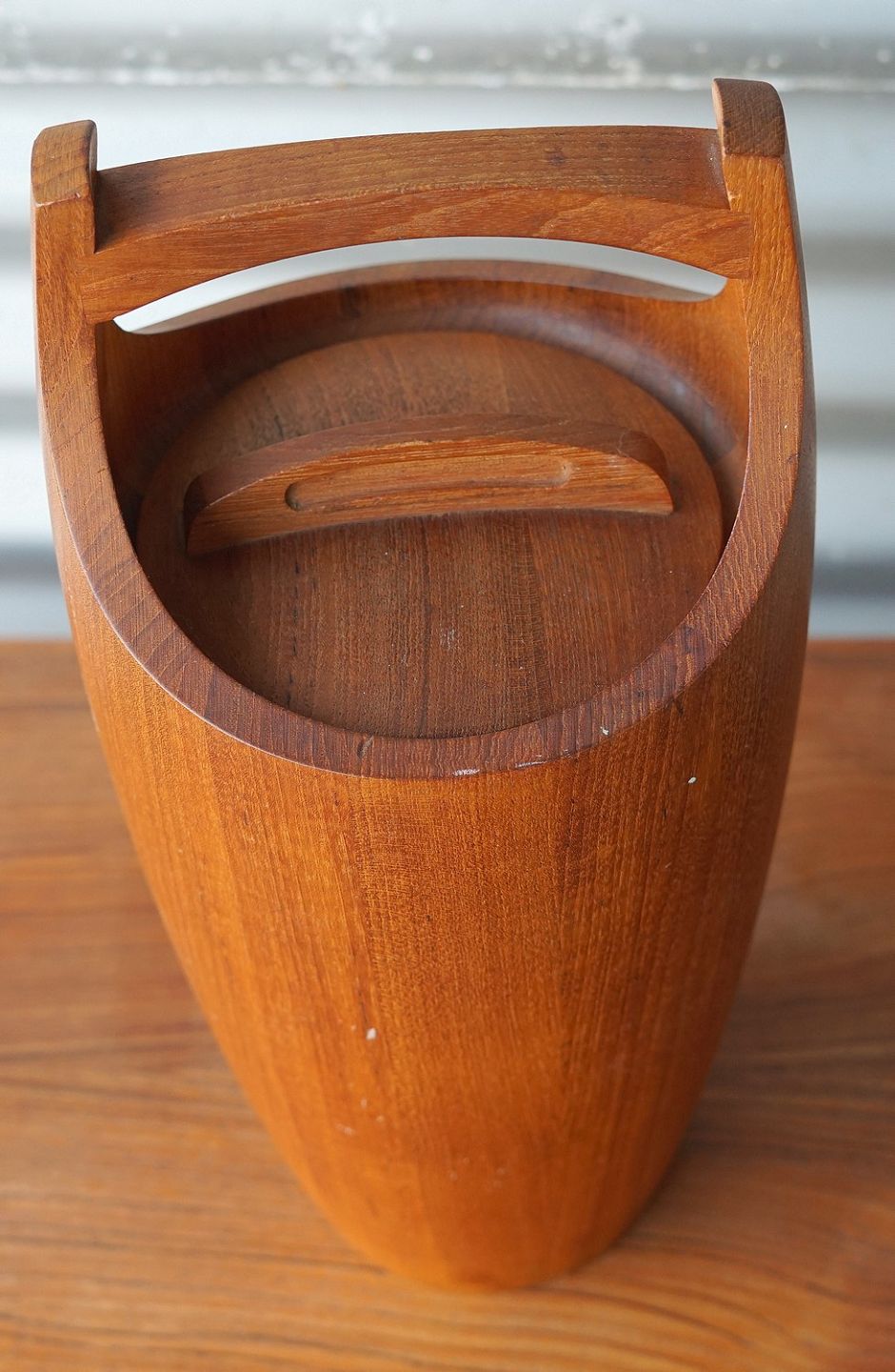 Jens Harald Quistgaard isspand, med låg, af stavlimet teaktræ, indsats af plast. IHQ