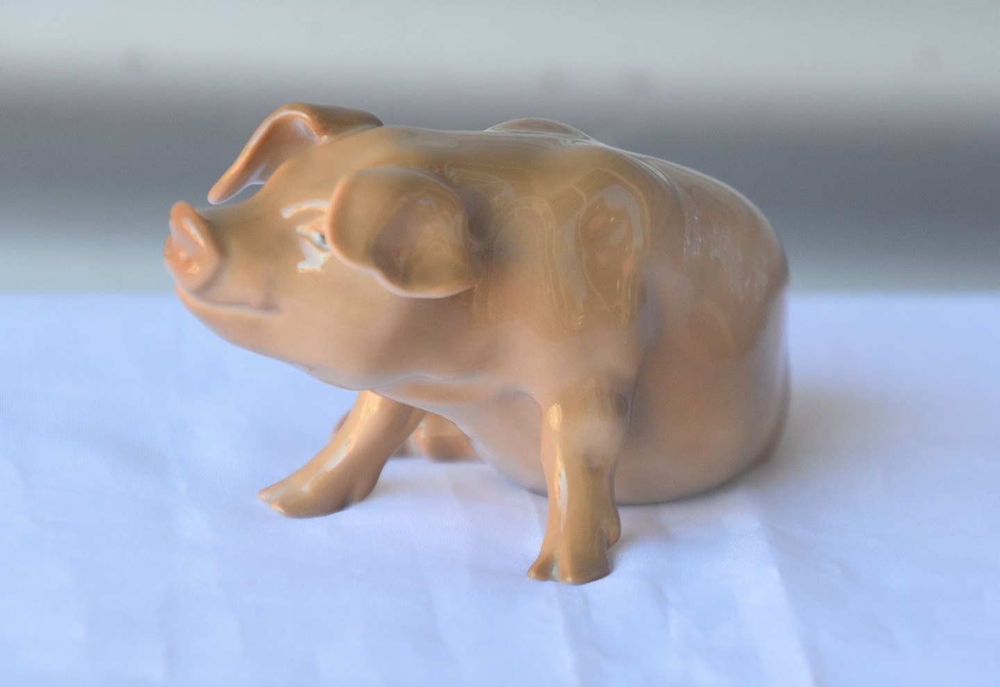 Figur i porcelæn med motiv af en siddende gris nr. 1582