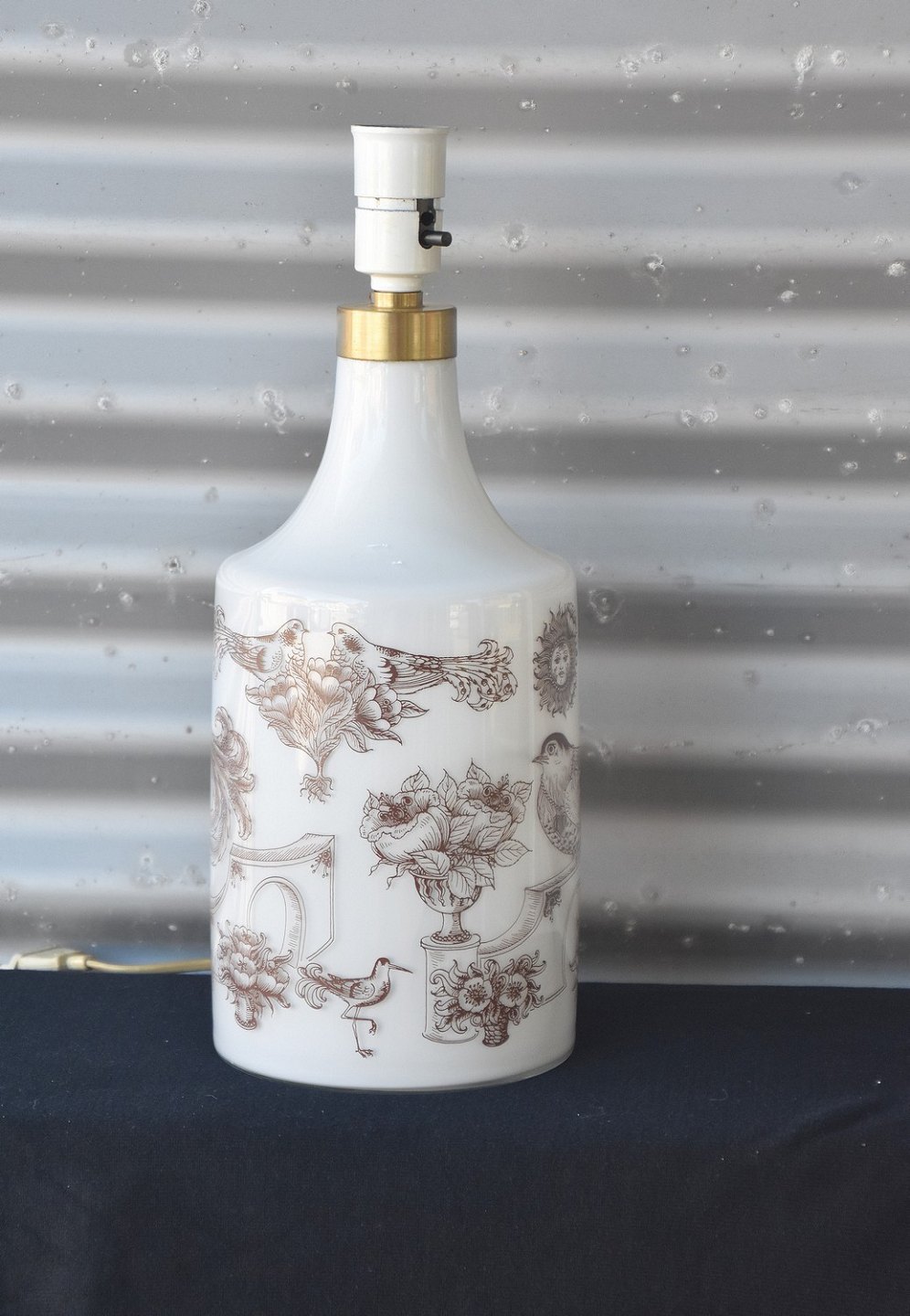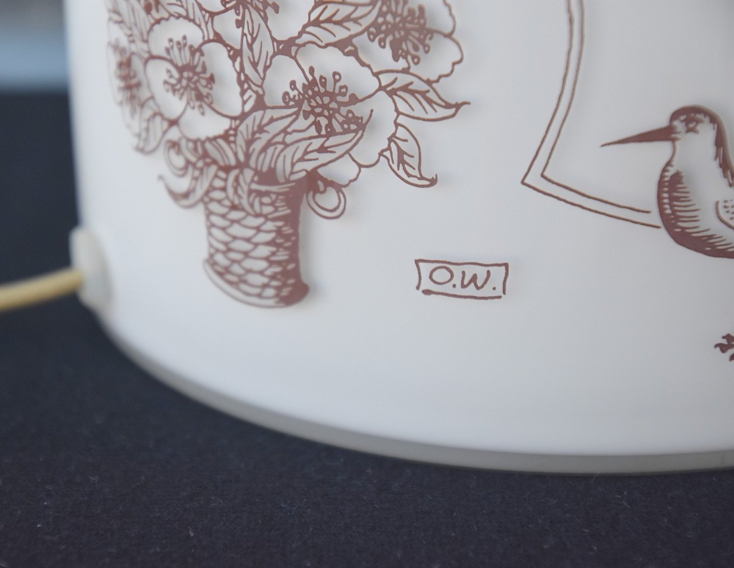 Holmegaard bordlampe. Holmegaard bordlampen er designet af Ole Winther, produceret fra 1975-1979. Bordlampen er af opalglas med brune streg tegninger af fugle.