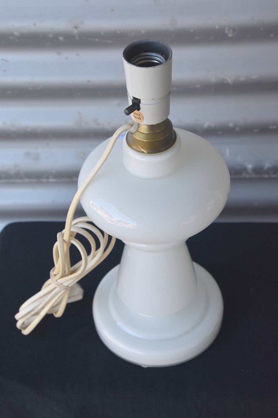 Holmegaard bordlampe i hvid opalglas og med messing fatning