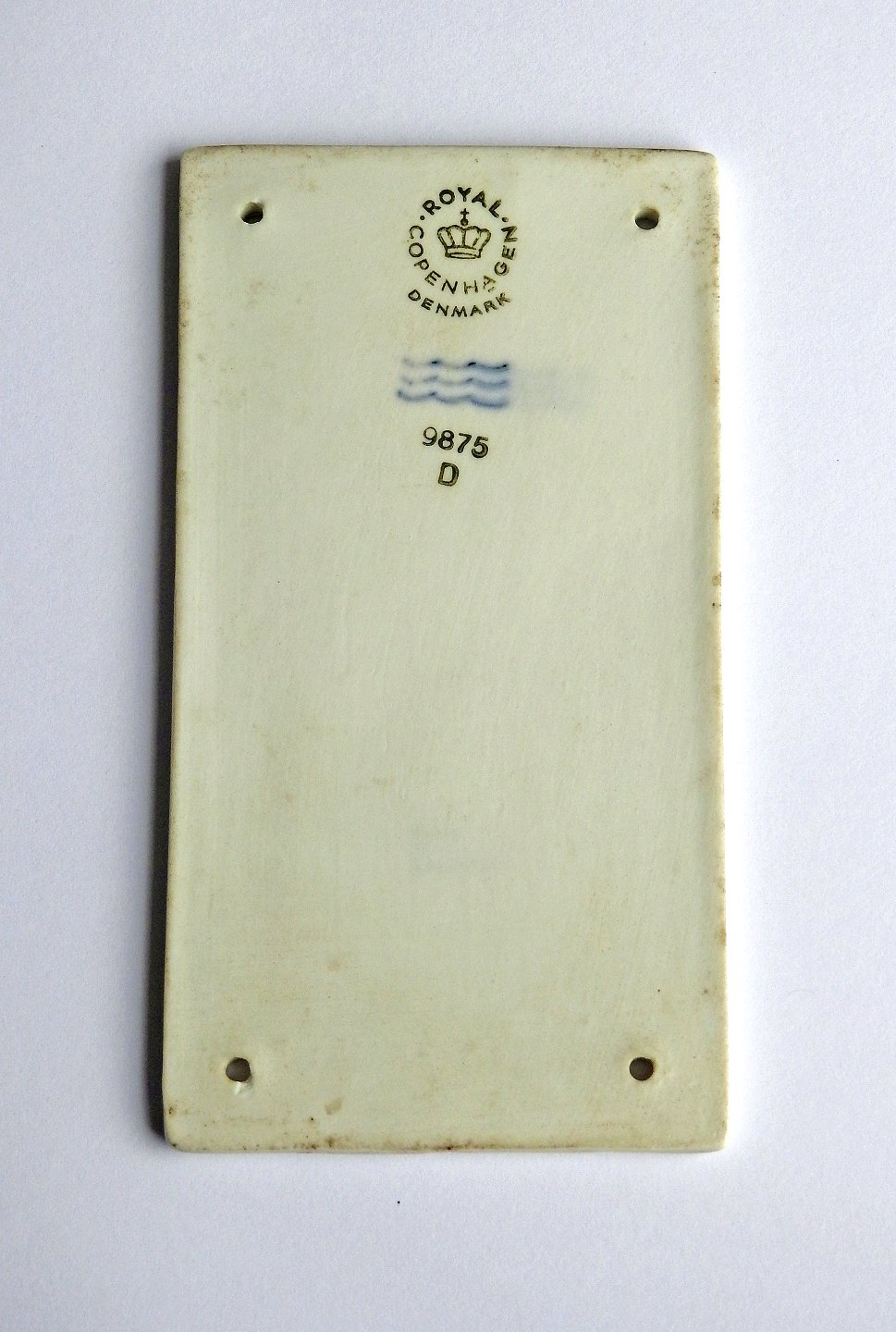 Kgl. musselmalet skilt i porcelæn fra Royal Copenhagen, Denmark nr. 9875. 1. sort. RC/RKC