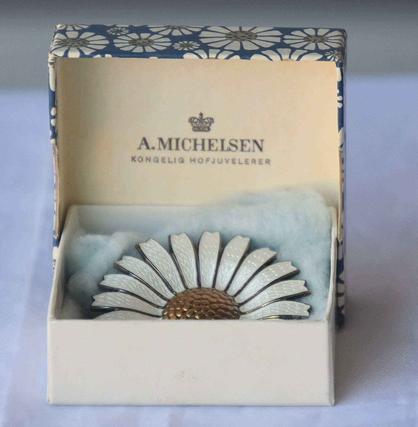 Marguerite brochen er med nedlagt emalje, brochen kommer i original æske og er den første type broche der blev lavet i 1941, med fine ciseleringer i emaljen. Brochen symboliserer, at den lille prinsesse blev født, midt i den mørke besættelsestid.