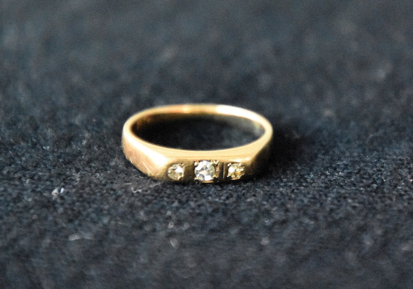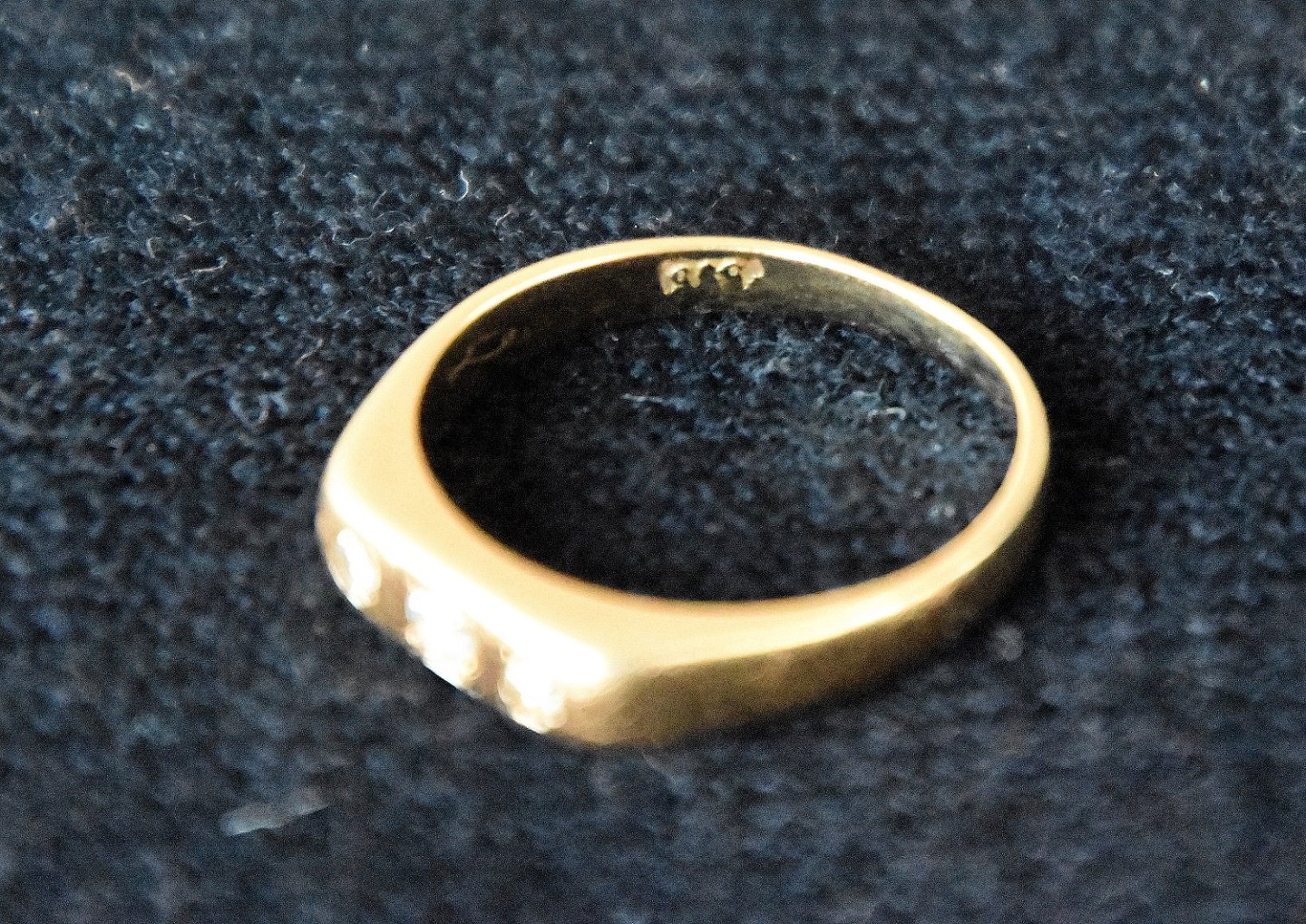 På guld ringens forside sidder der 3 klare diamanter