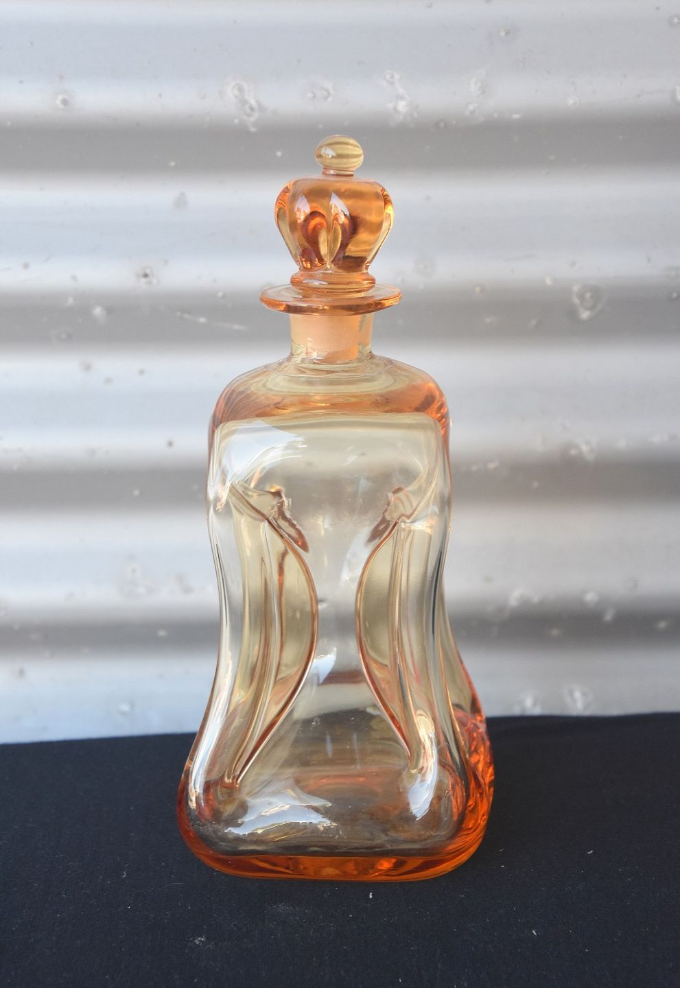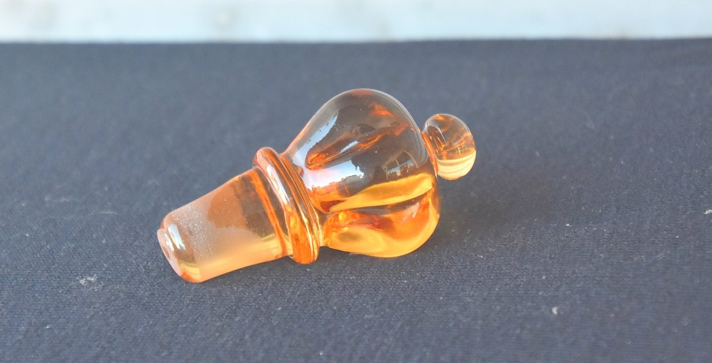 Holmegaard, Klukflask. Klukflasken er rav-farvet og med prop der er udformet som en kongekrone.