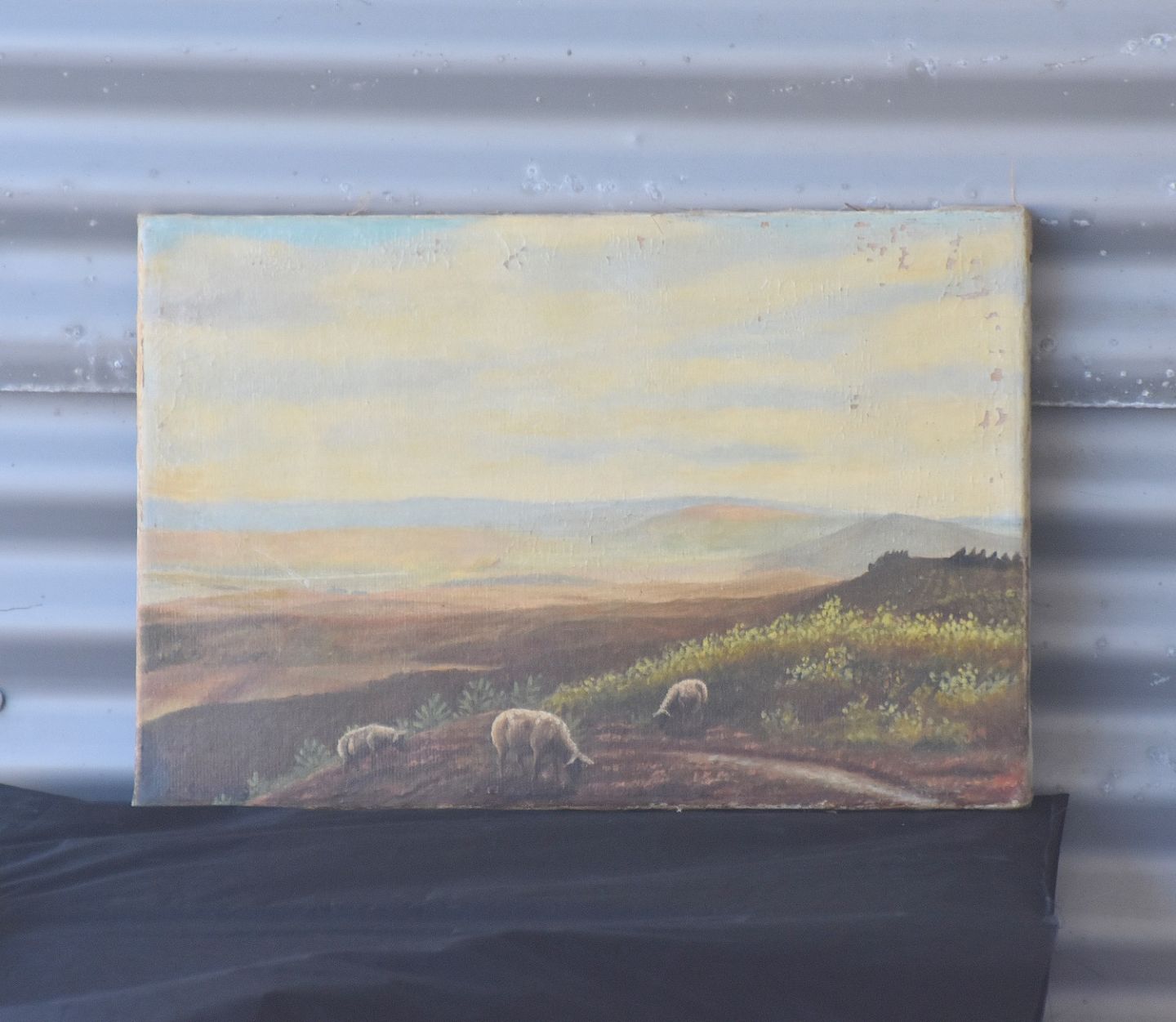 Maleriet måler 32*47 cm, obs små afskalninger.