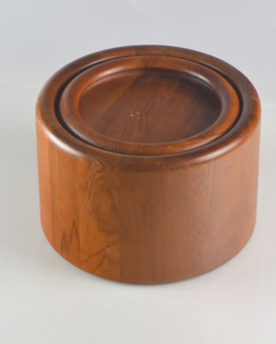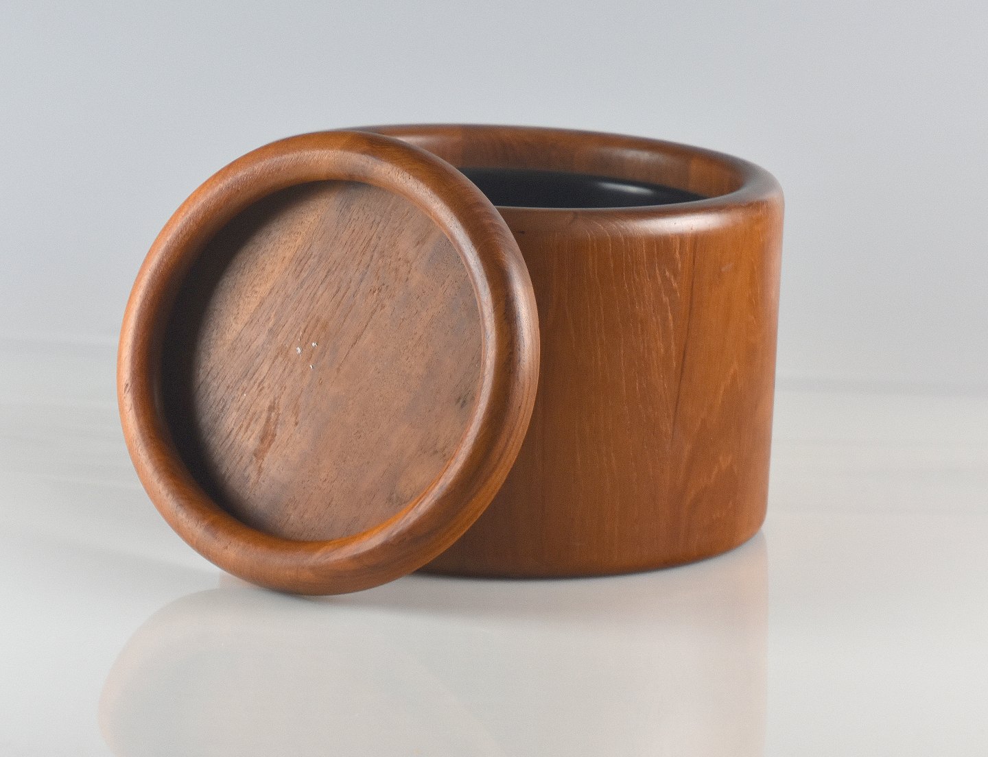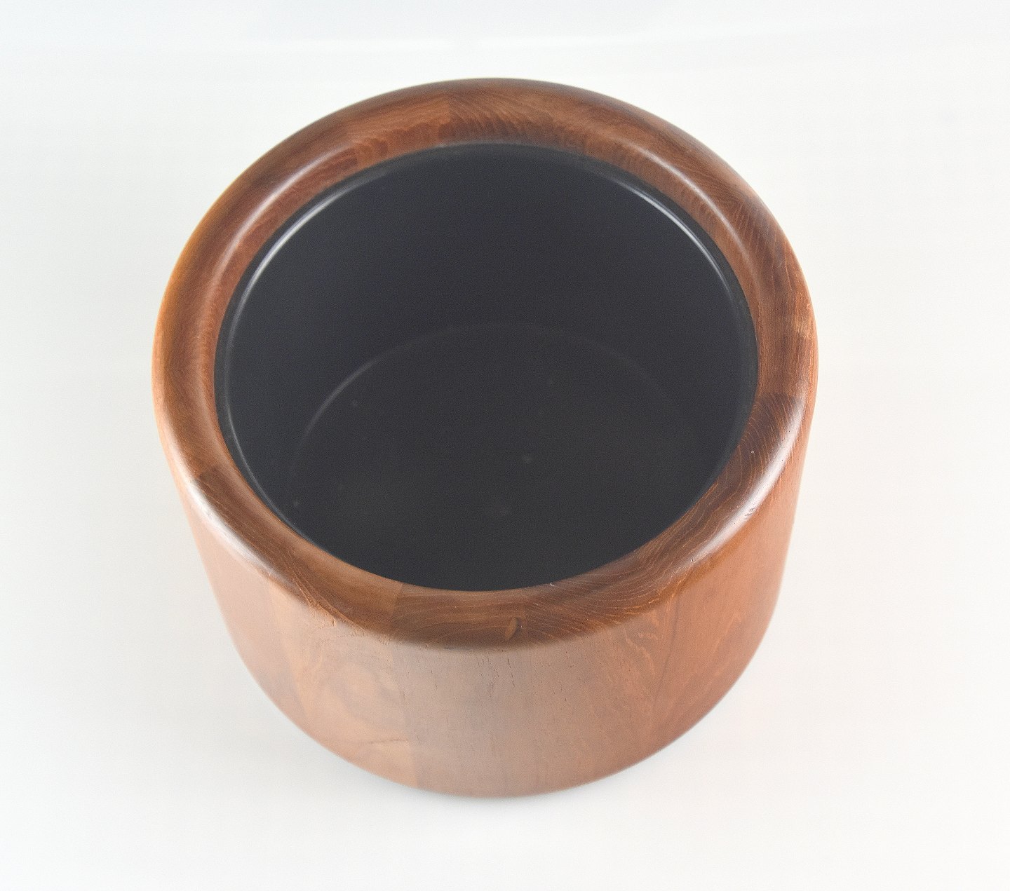 Nissen stavlimet isspand, i teaktræ med indsats af sort plastik. Fremstillet ved Nissen, Langå/Randers.