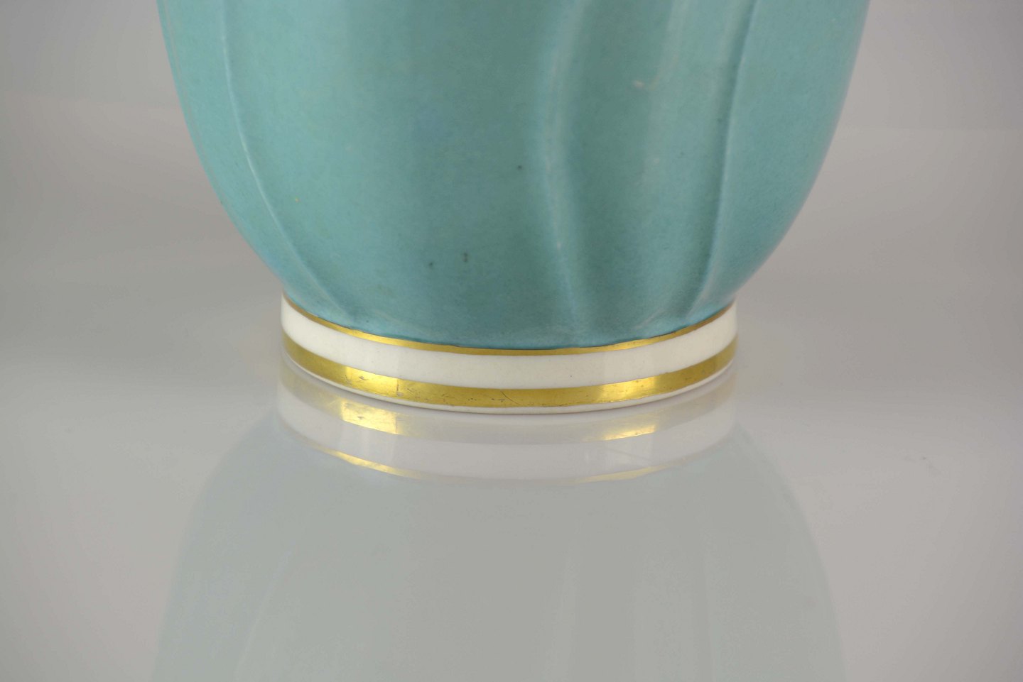 Grøn vase med snoninger og forgyldte kanter fra Lyngby Porcelæn