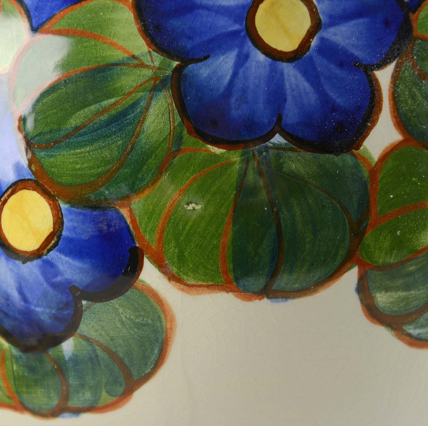 Dekoreret med blå blomster og grønne blade - Frk. Heibergs blå blomster.