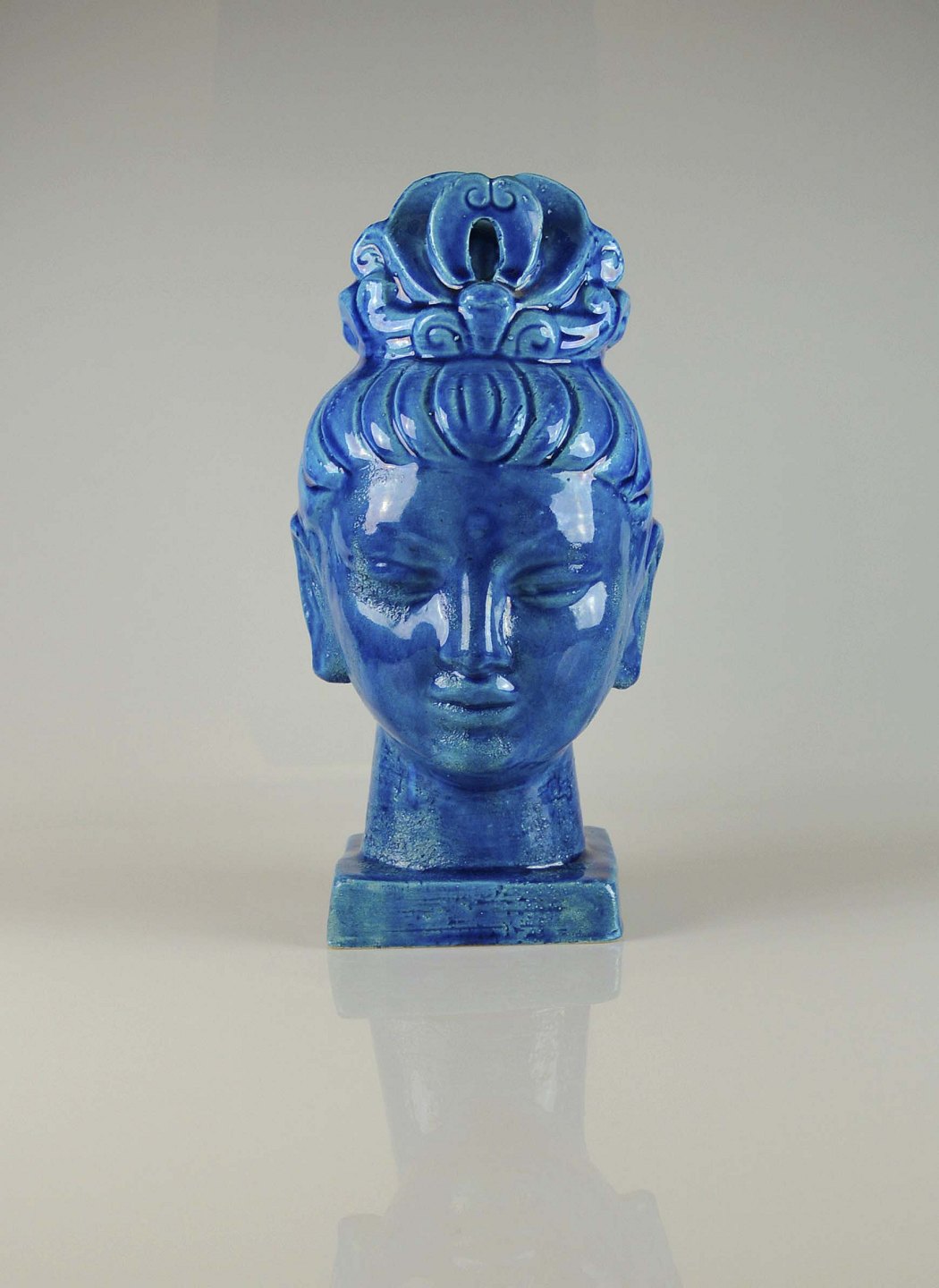 Rimini blå serien, Rimini blue, quan yin buste, blå buste, keramik buste, keramik, blå keramik, keramik figur, kvindefigur, kvindebuste