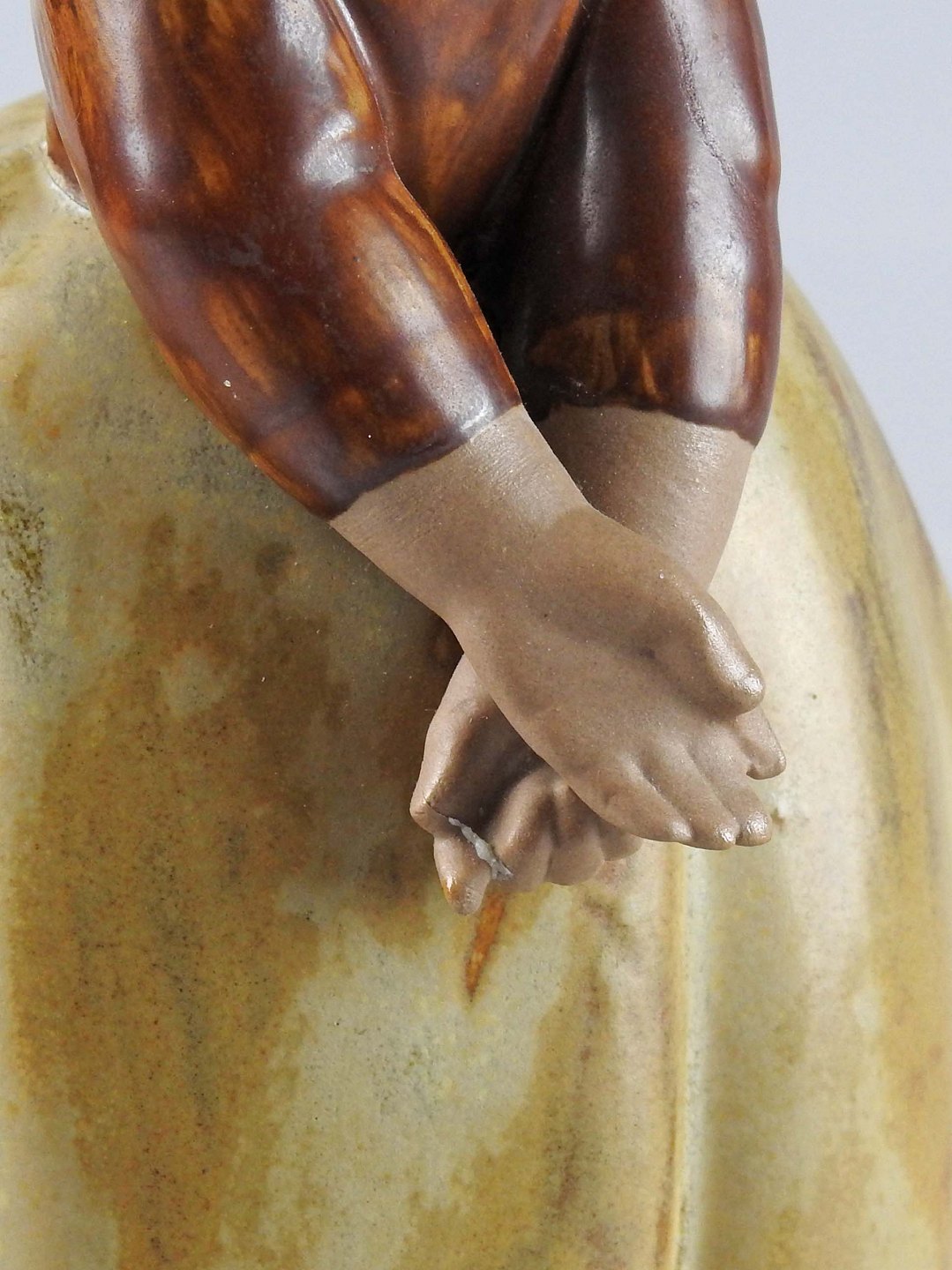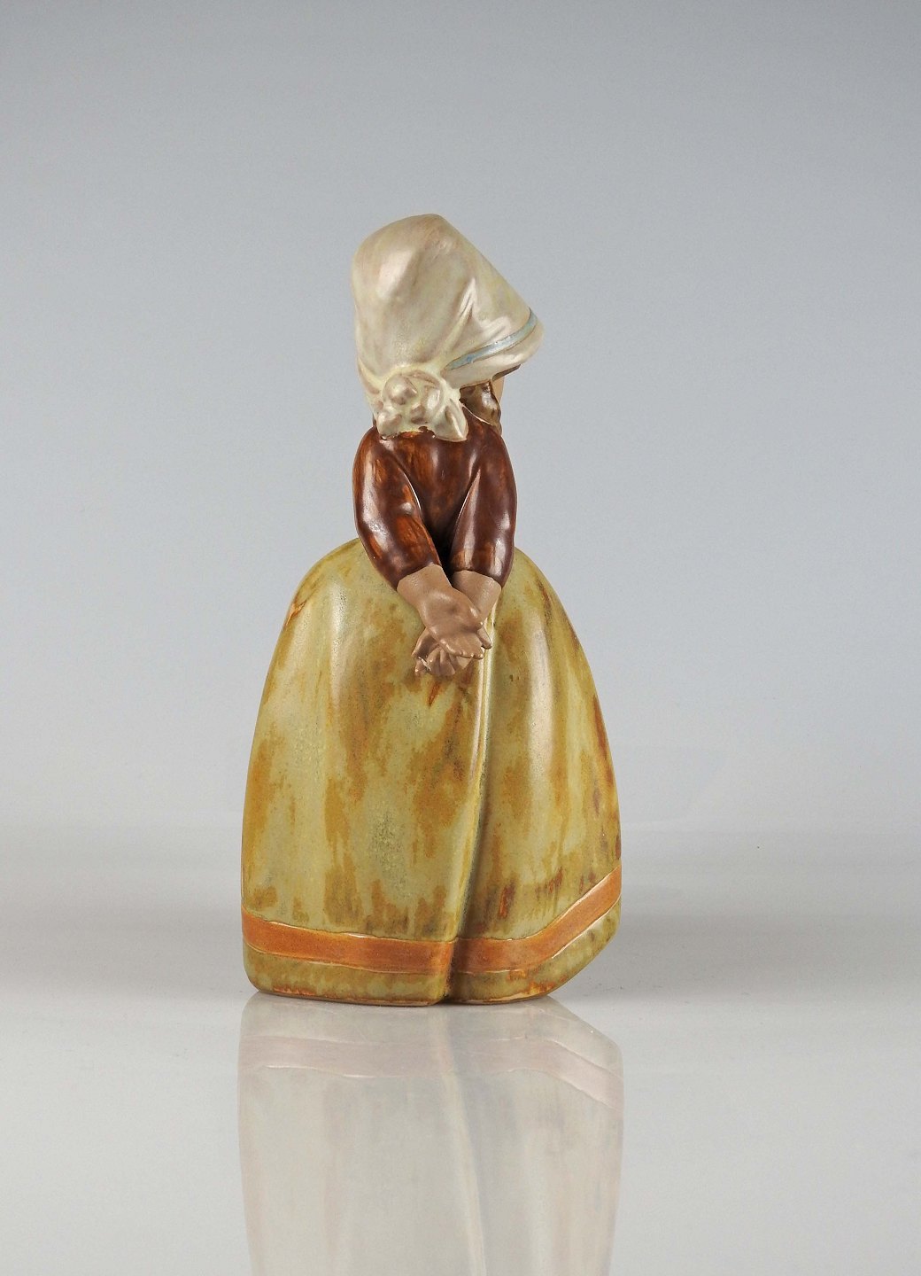 Figur i keramik af pige med stort skørt