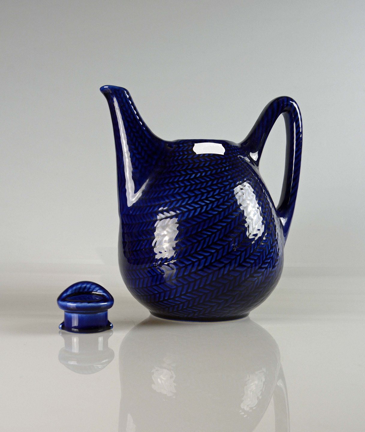 Blå Eld, Blå ild, blå eld tekande, svensk porcelæn, Hertha Bengtson kande, Rørstrand kande, tepotte, sildebensmønster
