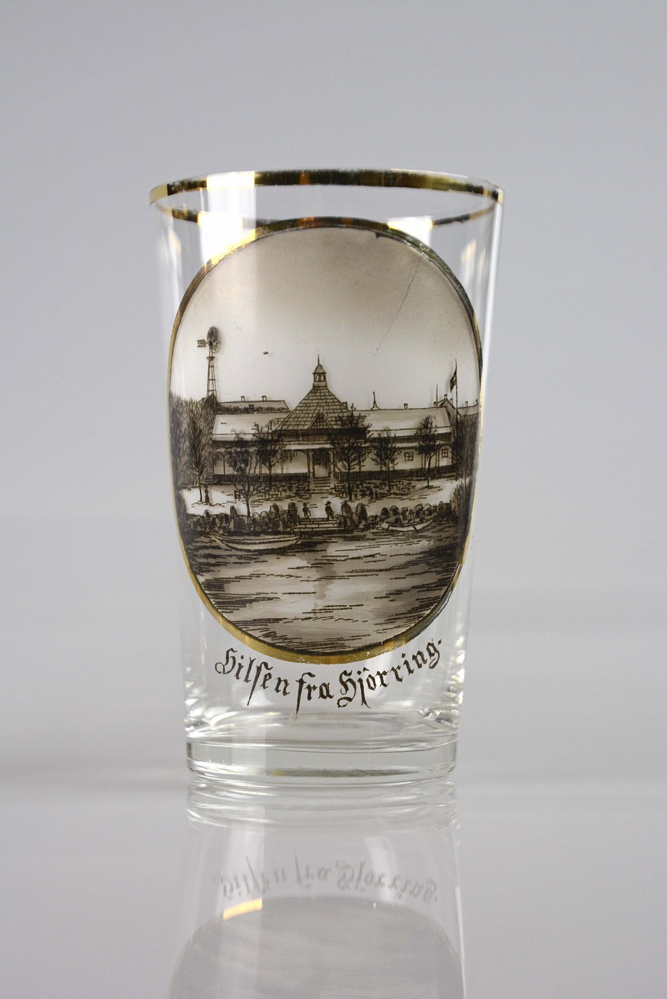 Drikkeglas med Hilsen fra Skagen og Hilsen fra Hjørring