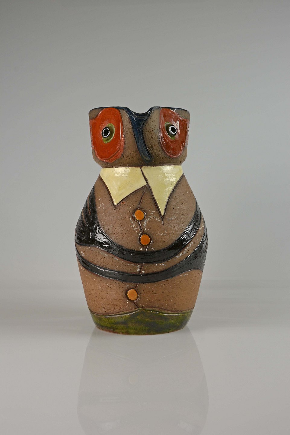 Kande i keramik i motiv af en ugle fra Keramiker Martha Zøllner, Silkeborg