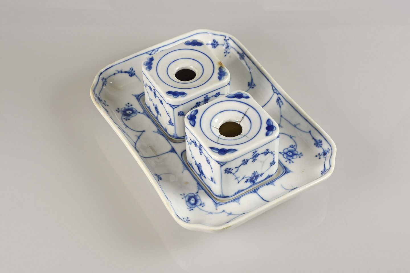 Blækhussæt, antik porcelæn, B&G antik, B&G porcelæn, Blåmalet porcelæn, Bing og Grøndahl porcelæn, B&G musselmalet