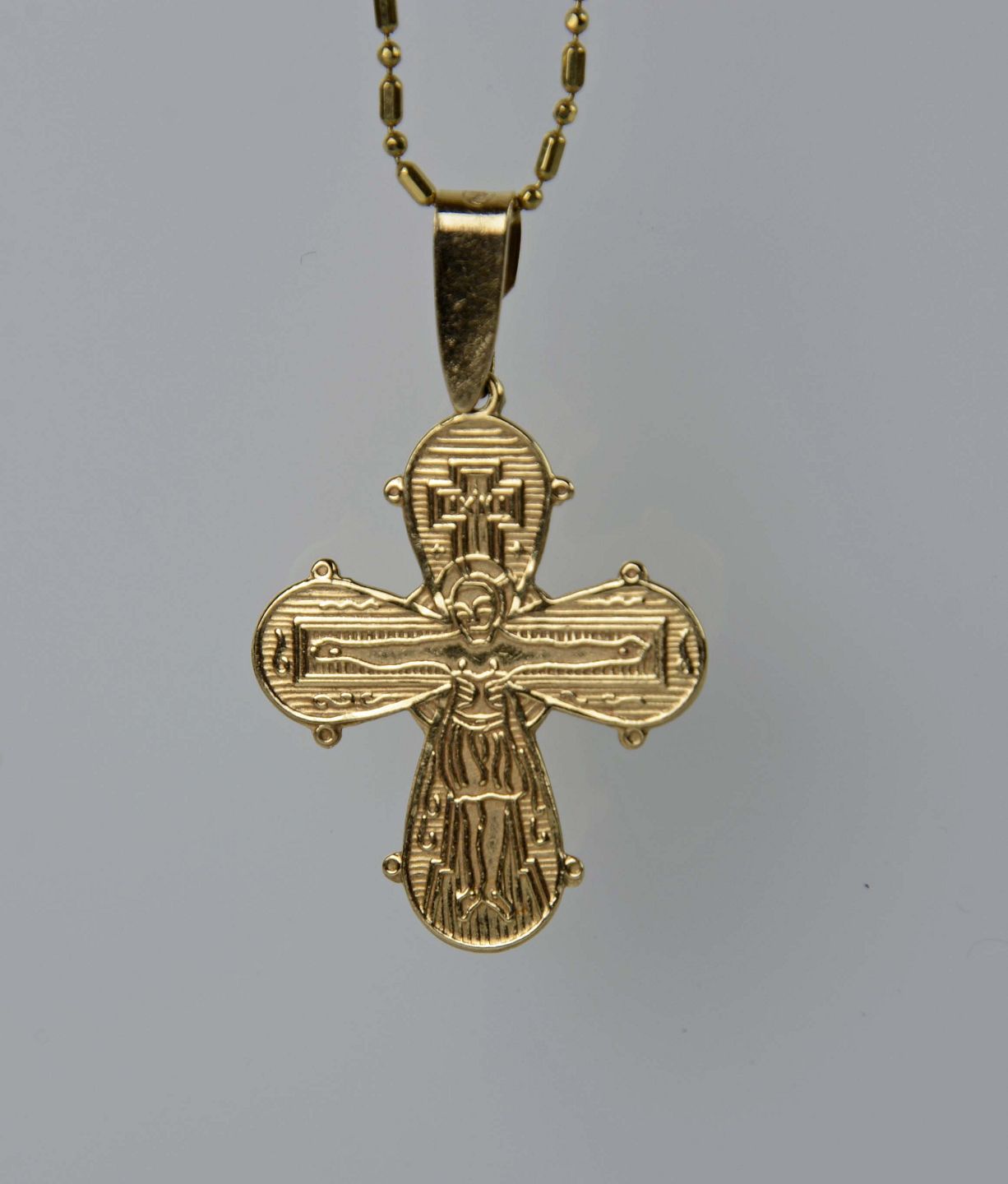Lille Dagmar kors stemplet "585", korset sælges uden kæde. 14 karat guld kors.