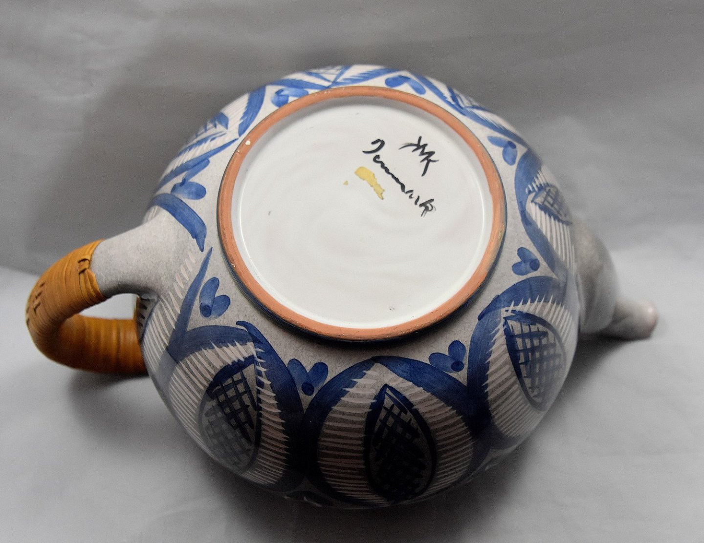 Karen Margrethe Karberg tekande i blå farvet mønster flettet hank.