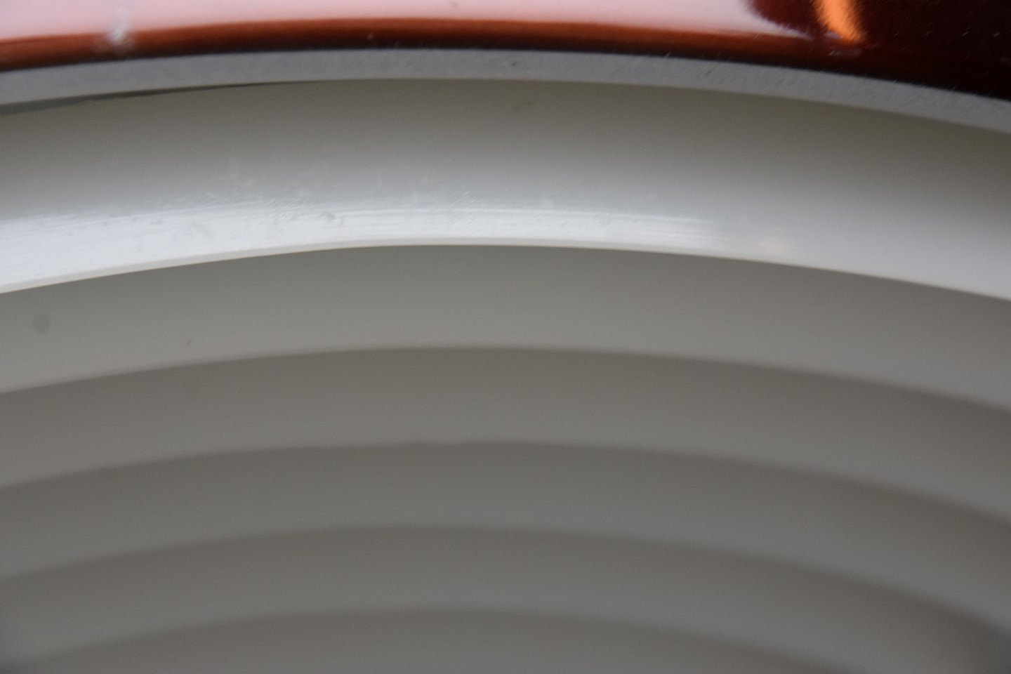 Brun lakeret metal pendel med lyse ribber i bunden