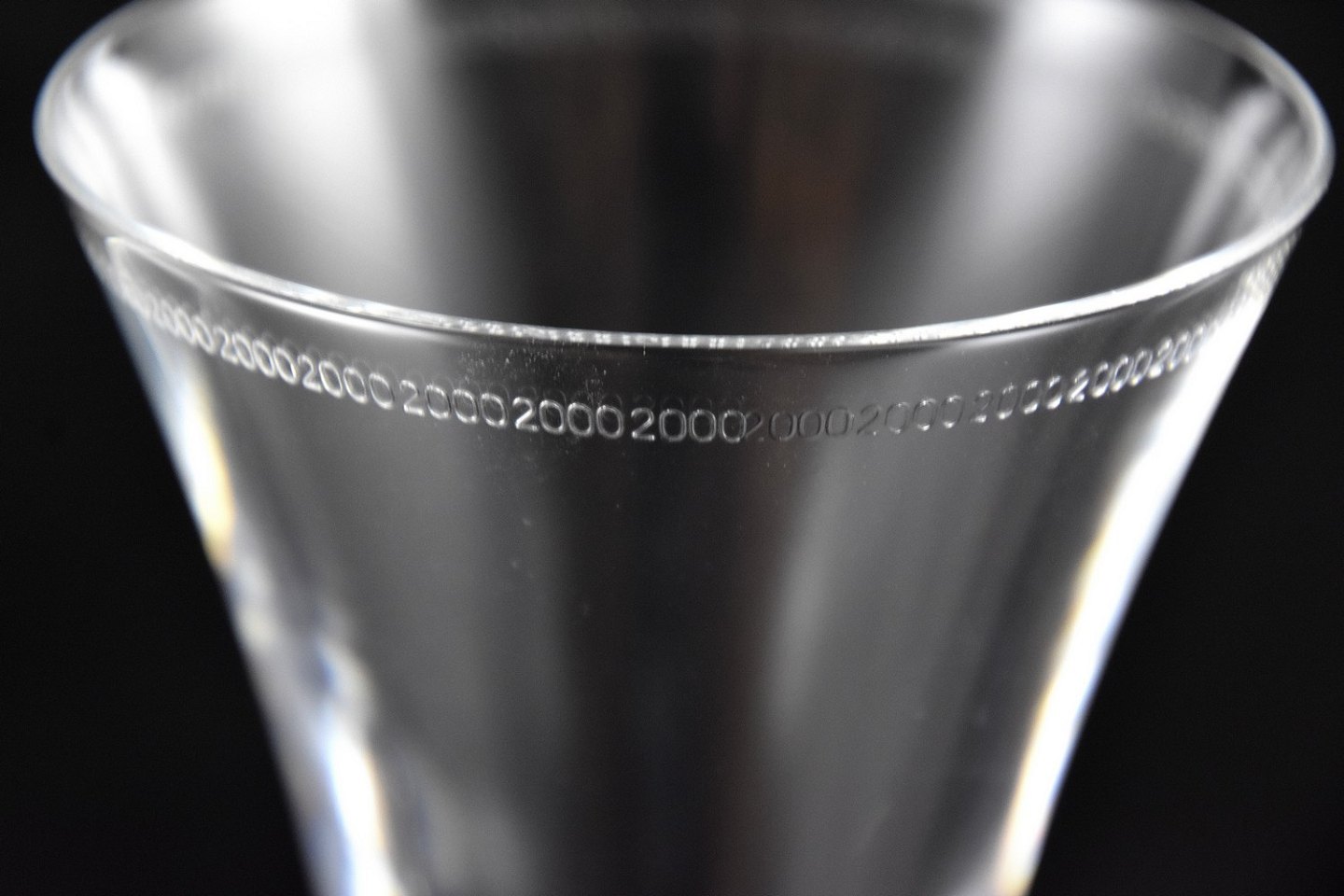 Millineums champagne skåle, i kanten i hver ende af glasset står der 1999 og 2000, hele vejen rundt.