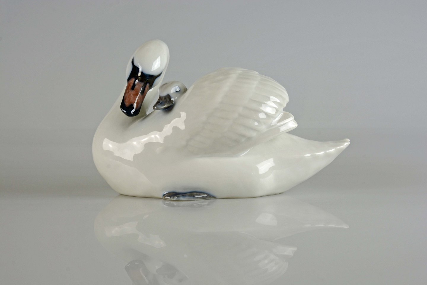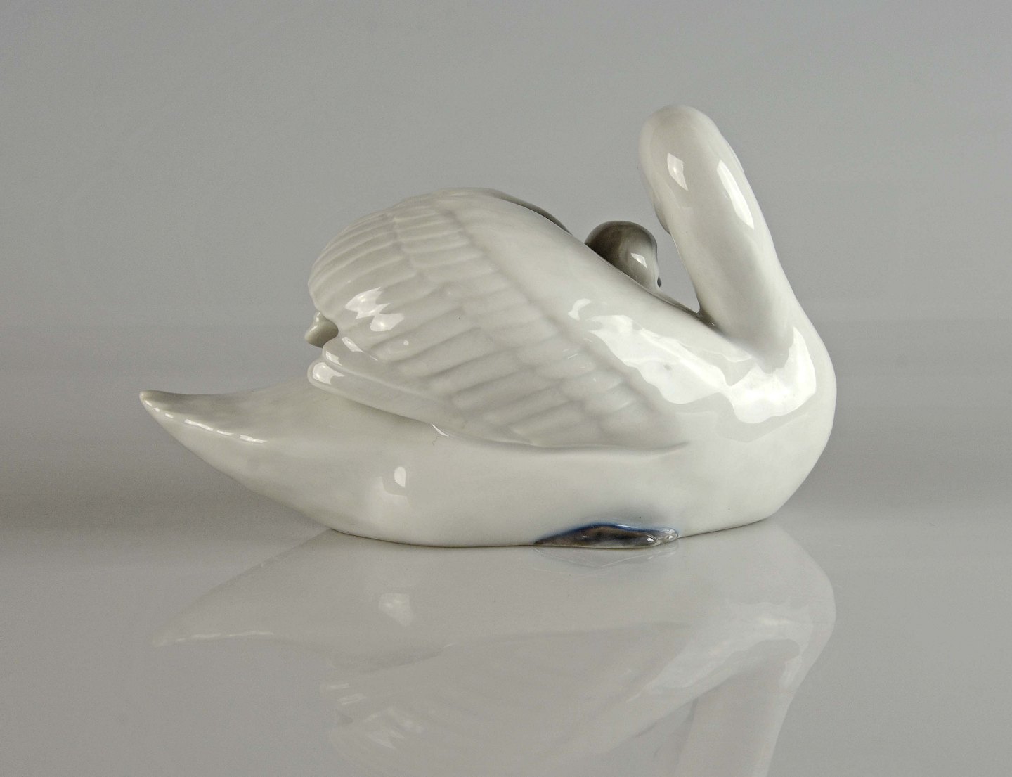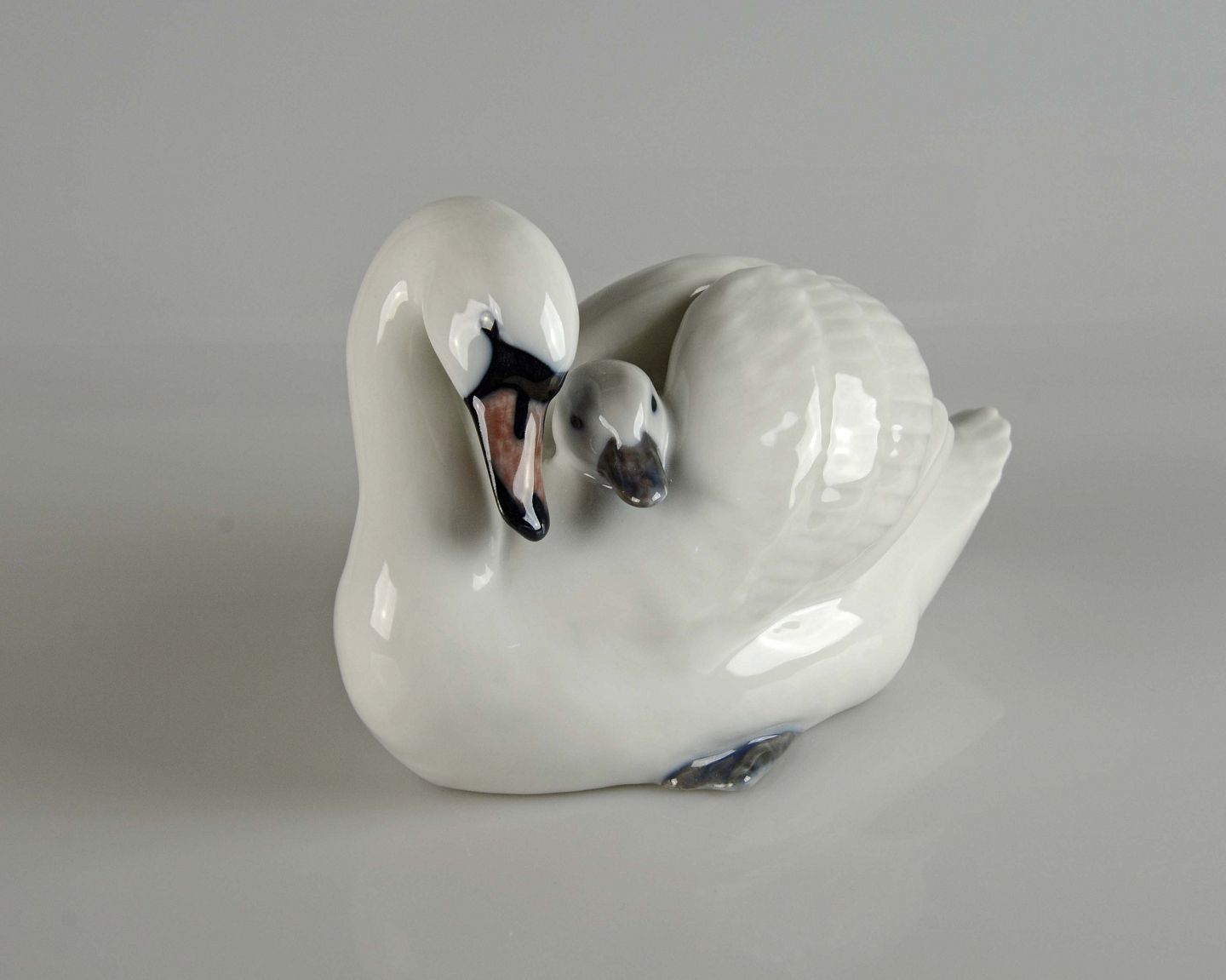 Royal Copenhagen Svane med unge på ryg nr. 360. 1. sortering. Hvid.