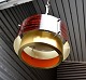 Pendel i metal med brunt plast yderst og orangemalet indvendig