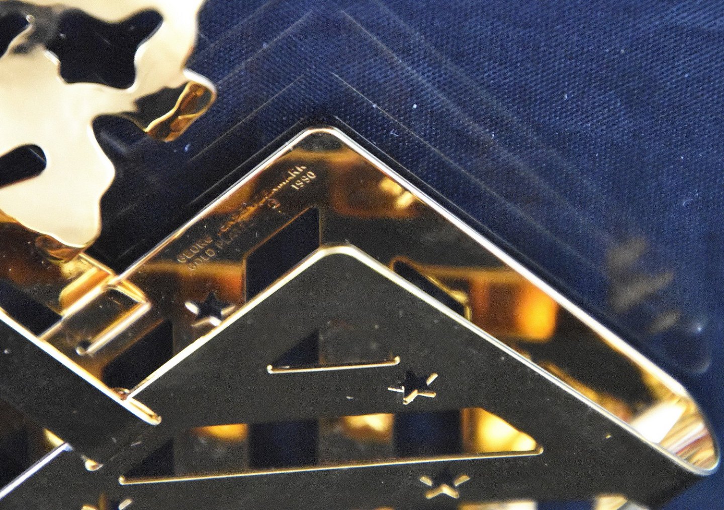 Juleophæng, belagt med 24 karats guld. Ophængene er fra 1991, 1992 og 1993. Design Georg Jensen