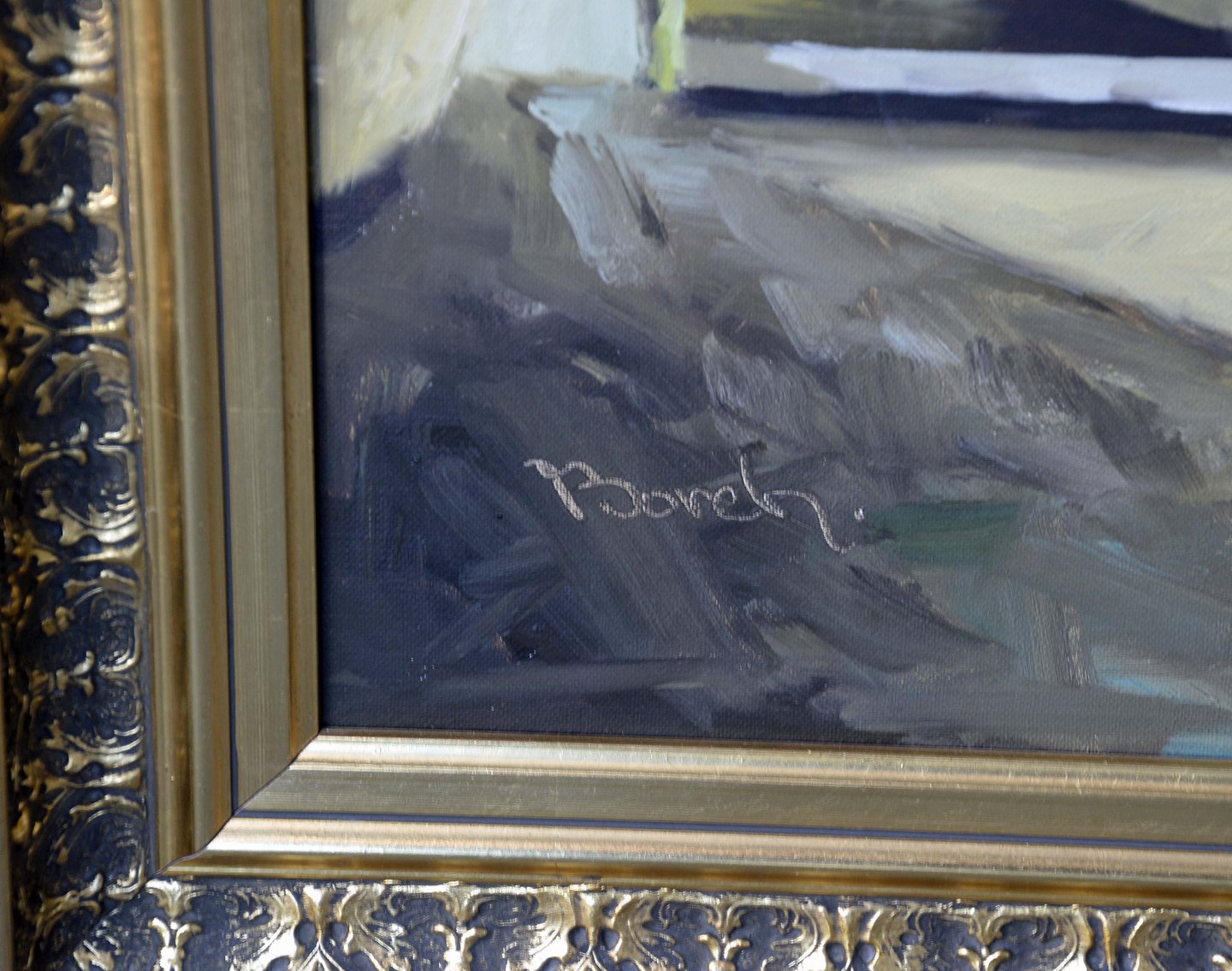 Emiel Hansen Akrylmaleri Figurer omkring et bord