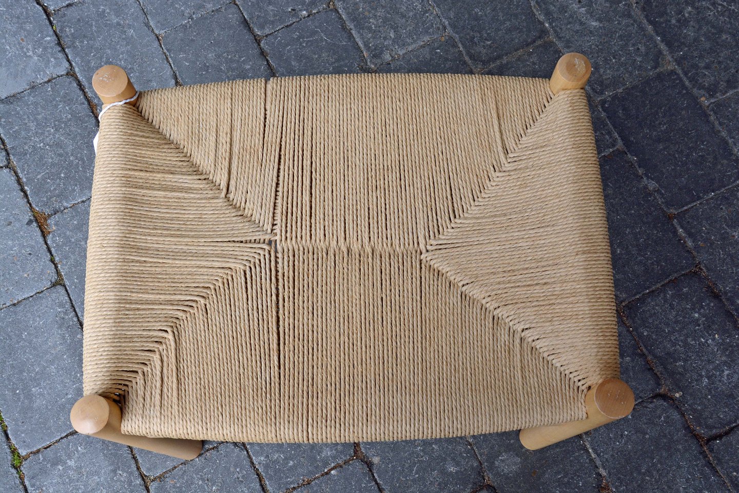 Skammel i bøgetræ model CH-53 med flettet sæde.