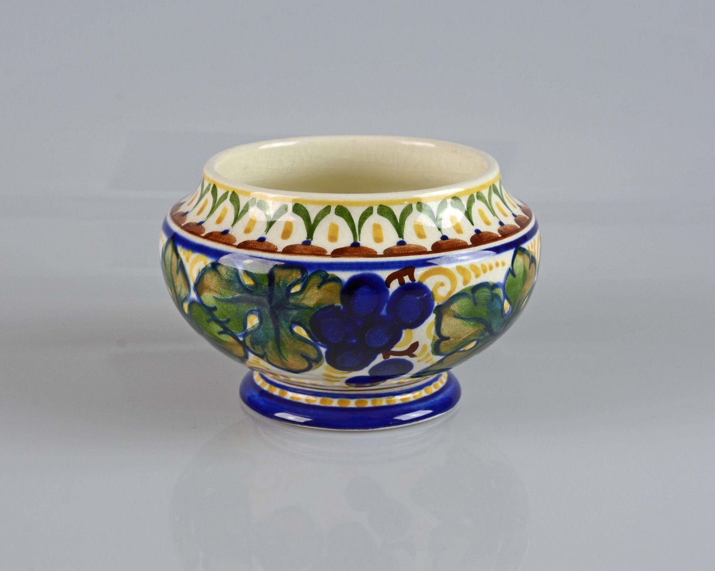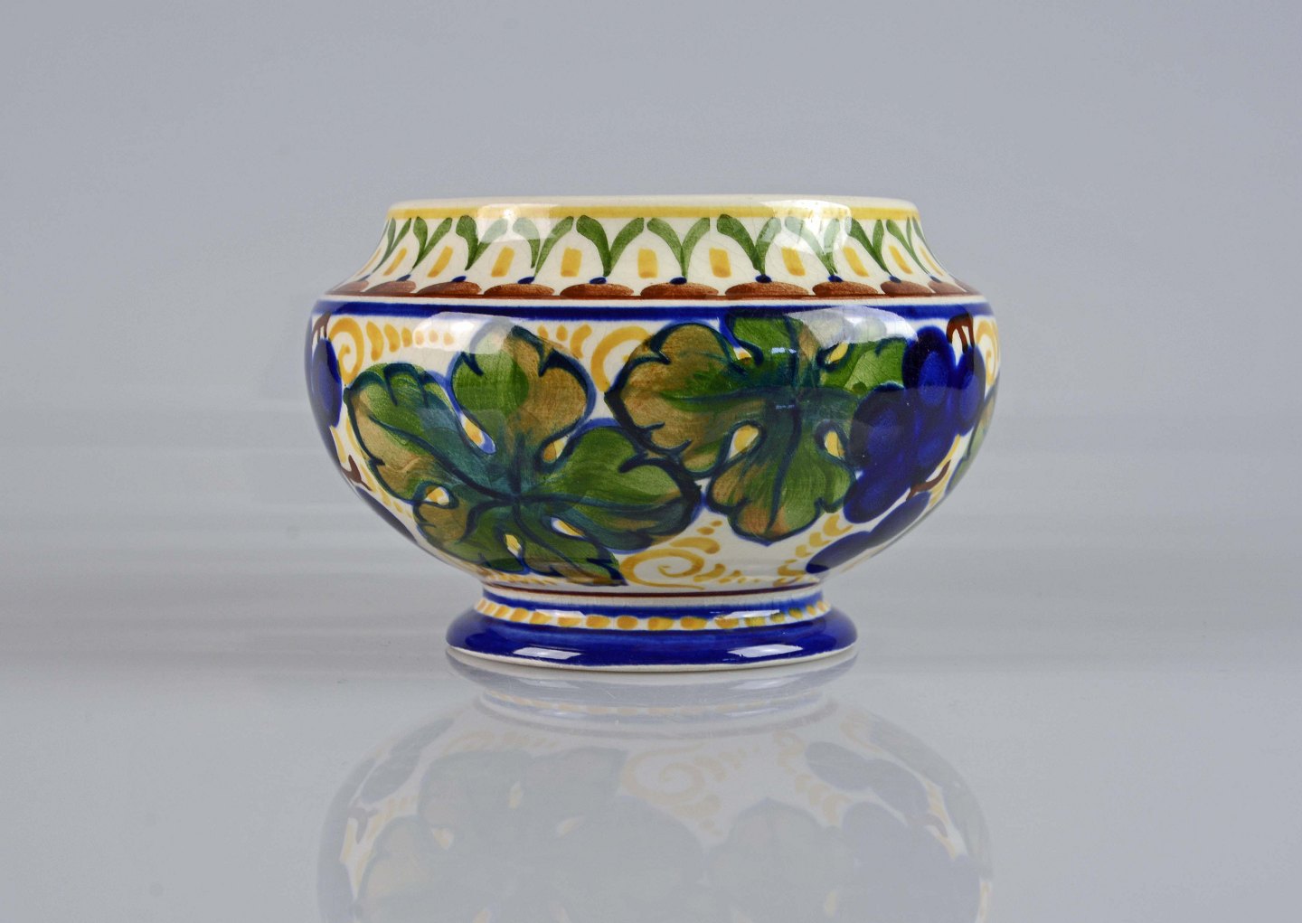 Mindre skål i kunstfajance med motiv af vindrueklaser og blade fra Aluminia nr. 665/904